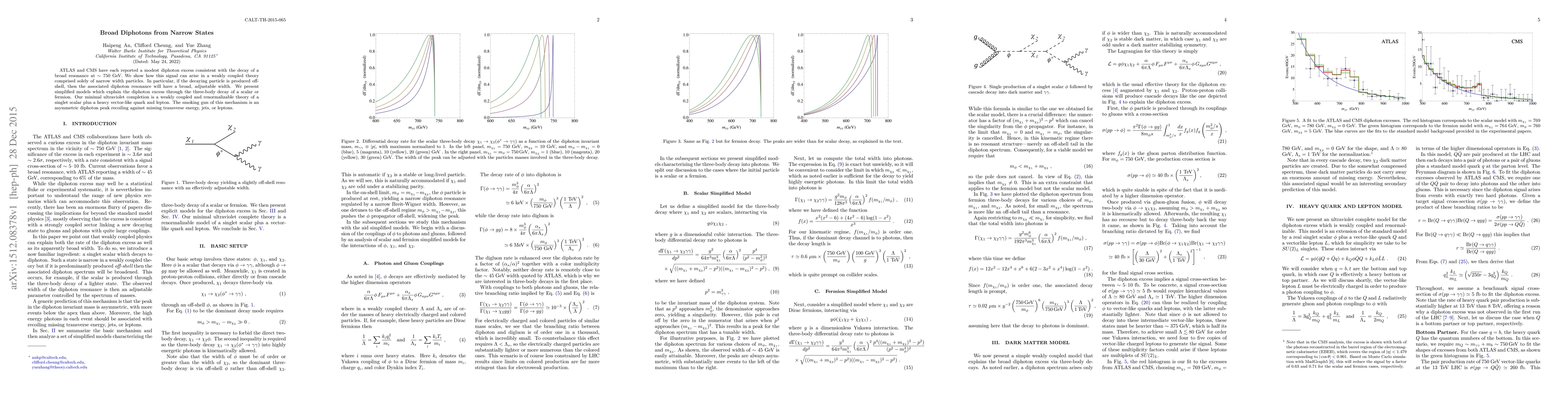 This research proposes a weakly coupled theory explaining the observed broad diphoton excess at 750 GeV, suggesting the decay of off-shell particles into diphotons. It presents simplified models with a scalar or fermion three-body decay, and a minimal theory involving a singlet scalar and heavy vector-like quarks/leptons, predicting an asymmetric diphoton peak alongside missing energy, jets, or leptons.