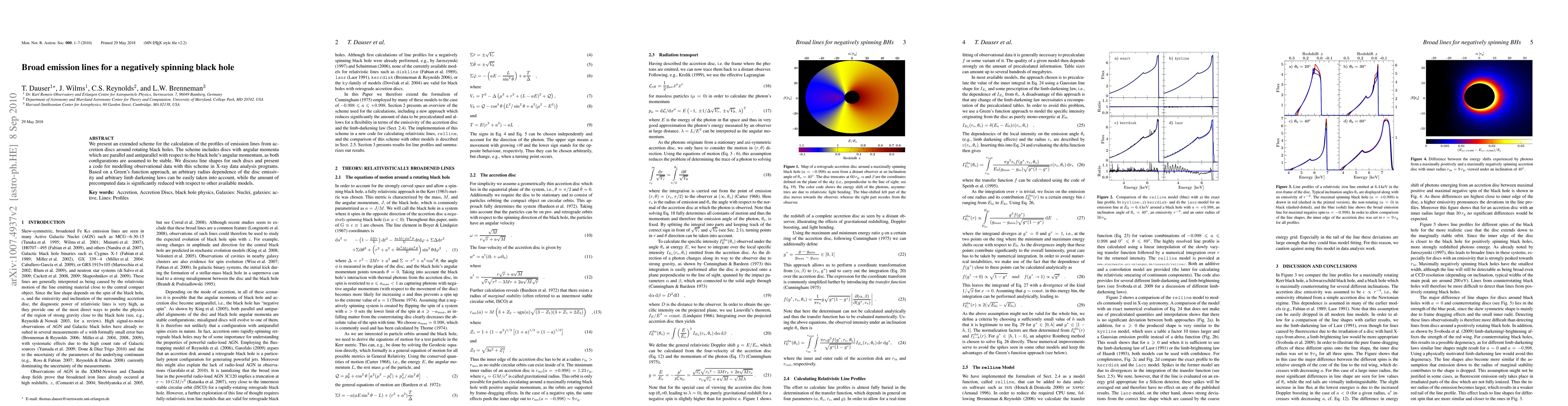 We present an extended scheme for the calculation of the profiles of emission lines from accretion discs around rotating black holes. The scheme includes discs with angular momenta which are parallel and antiparallel with respect to the black hole's angular momentum, as both configurations are assumed to be stable (King et al., 2005). We discuss line shapes for such discs and present a code for modelling observational data with this scheme in X-ray data analysis programs. Based on a Green's function approach, an arbitrary radius dependence of the disc emissivity and arbitrary limb darkening laws can be easily taken into account, while the amount of precomputed data is significantly reduced with respect to other available models.