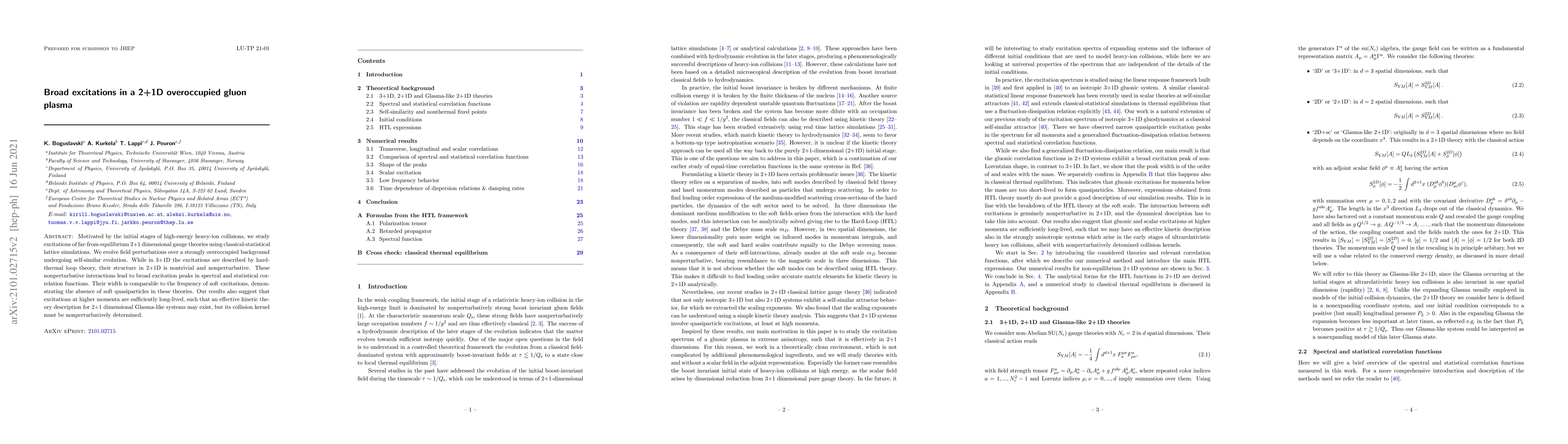 Researchers studied excitations in 2+1D gauge theories using lattice simulations, finding broad excitation peaks that are comparable to soft excitations, suggesting the absence of soft quasiparticles and potential for an effective kinetic theory description.