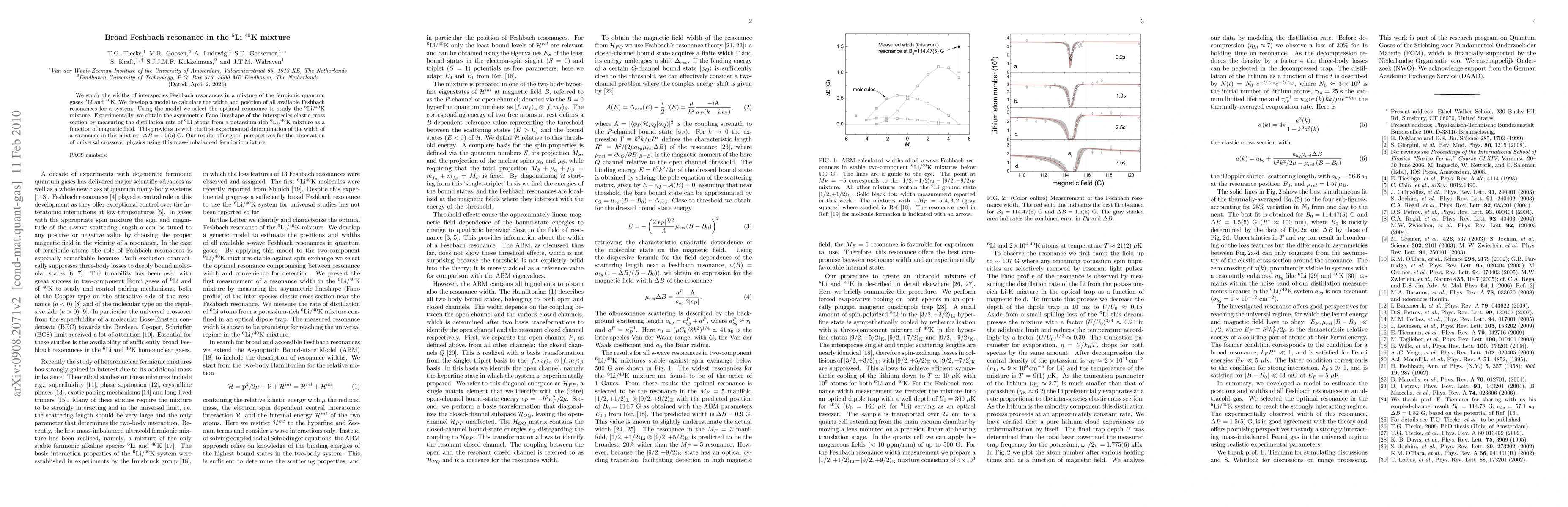 The novelty of this work lies in the development and application of an extended ABM to accurately predict and experimentally determine Feshbach resonance widths in the 6Li/40K mixture, offering a valuable tool for studying universal physics in mass-imbalanced fermionic systems.