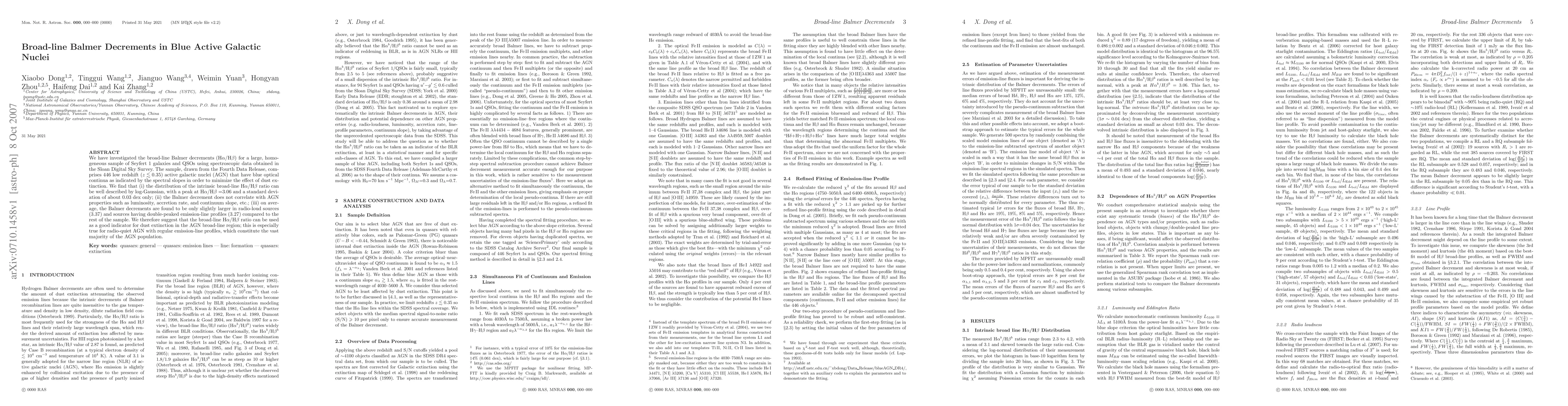We have investigated the broad-line Balmer decrements (Halpha/Hbeta) for a large, homogeneous sample of Seyfert 1 galaxies and QSOs using spectroscopic data obtained in the Sloan Digital Sky Survey. The sample, drawn from the Fourth Data Release, comprises 446 low redshift (z < 0.35) active galactic nuclei (AGN) that have blue optical continua as indicated by the spectral slopes in order to minimize the effect of dust extinction. We find that (i) the distribution of the intrinsic broad-line Halpha/Hbeta ratio can be well described by log-Gaussian, with a peak at Halpha/Hbeta=3.06 and a standard deviation of about 0.03 dex only; (ii) the Balmer decrement does not correlate with AGN properties such as luminosity, accretion rate, and continuum slope, etc.; (iii) on average, the Balmer decrements are found to be only slightly larger in radio-loud sources (3.37) and sources having double-peaked emission-line profiles (3.27) compared to the rest of the sample. We therefore suggest that the broad-line Halpha/Hbeta ratio can be used as a good indicator for dust extinction in the AGN broad-line region; this is especially true for radio-quiet AGN with regular emission-line profiles, which constitute the vast majority of the AGN population.