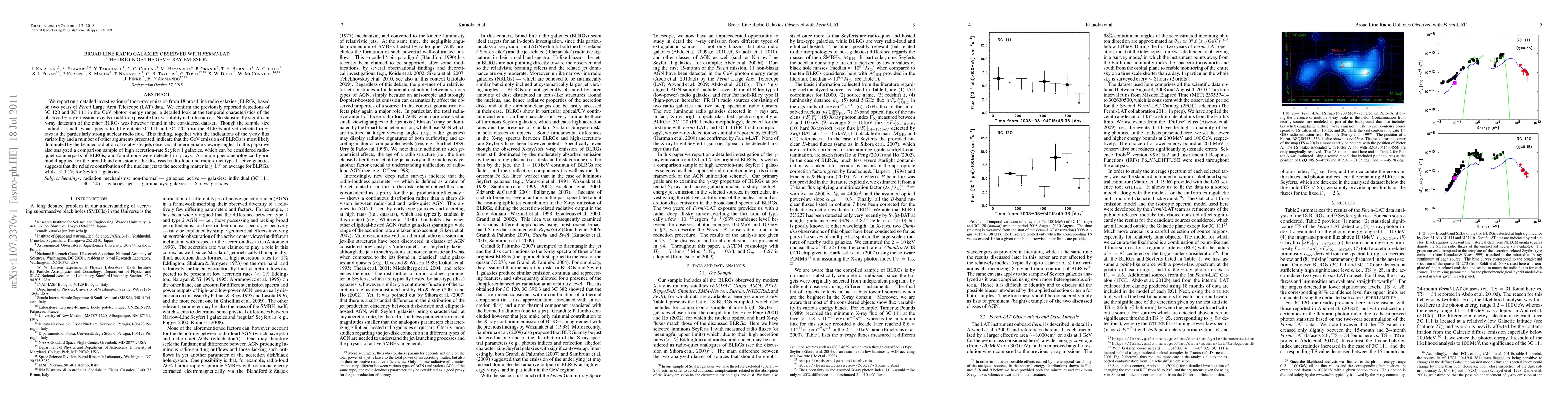 We report on a detailed investigation of the gamma-ray emission from 18 broad line radio galaxies (BLRGs) based on two years of Fermi Large Area Telescope (LAT) data. We confirm the previously reported detections of 3C 120 and 3C 111 in the GeV photon energy range; a detailed look at the temporal characteristics of the observed gamma-ray emission reveals in addition possible flux variability in both sources. No statistically significant gamma-ray detection of the other BLRGs was however found in the considered dataset. Though the sample size studied is small, what appears to differentiate 3C 111 and 3C 120 from the BLRGs not yet detected in gamma-rays is the particularly strong nuclear radio flux. This finding, together with the indications of the gamma-ray flux variability and a number of other arguments presented, indicate that the GeV emission of BLRGs is most likely dominated by the beamed radiation of relativistic jets observed at intermediate viewing angles. In this paper we also analyzed a comparison sample of high accretion-rate Seyfert 1 galaxies, which can be considered radio-quiet counterparts of BLRGs, and found none were detected in gamma-rays. A simple phenomenological hybrid model applied for the broad-band emission of the discussed radio-loud and radio-quiet type 1 active galaxies suggests that the relative contribution of the nuclear jets to the accreting matter is > 1 percent on average for BLRGs, whilst <0.1 percent for Seyfert 1 galaxies.