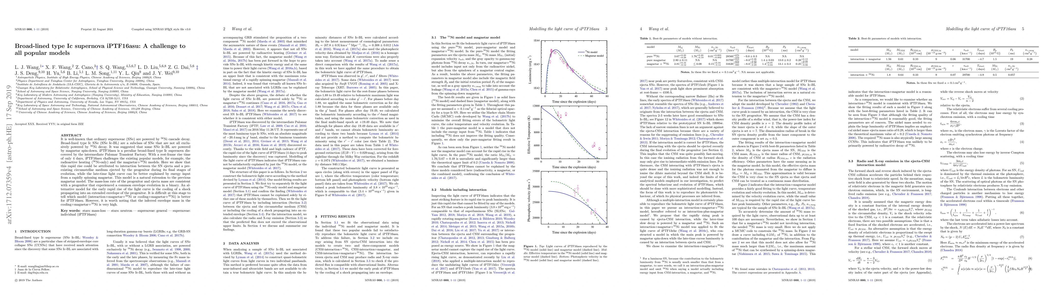 iPTF16asu, a broad-lined type Ic supernova, challenges existing models due to its rapid rise time, suggesting an interaction with a pre-existing circumstellar medium or shock cooling. The late-time light curve is best explained by a rapidly spinning magnetar, indicating a possible common envelope evolution progenitor.
