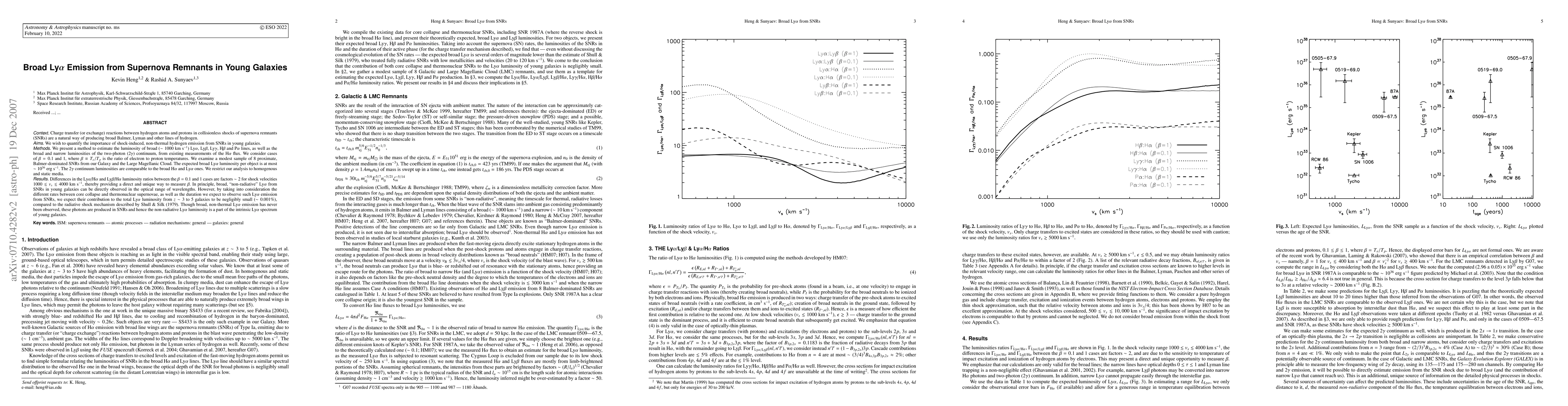 Charge transfer (or exchange) reactions between hydrogen atoms and protons in collisionless shocks of supernova remnants (SNRs) are a natural way of producing broad Balmer, Lyman and other lines of hydrogen. We wish to quantify the importance of shock-induced, non-thermal hydrogen emission from SNRs in young galaxies. We present a method to estimate the luminosity of broad ($\sim 1000$ km s$^{-1}$) Ly$\alpha$, Ly$\beta$, Ly$\gamma$, H$\beta$ and P$\alpha$ lines, as well as the broad and narrow luminosities of the two-photon (2$\gamma$) continuum, from existing measurements of the H$\alpha$ flux. The expected broad Ly$\alpha$ luminosity per object is at most $\sim 10^{36}$ erg s$^{-1}$. In principle, broad, ``non-radiative'' Ly$\alpha$ from SNRs in young galaxies can be directly observed in the optical range of wavelengths. However, by taking into consideration the different rates between core collapse and thermonuclear supernovae, as well as the duration we expect to observe such Ly$\alpha$ emission from SNRs, we expect their contribution to the total Ly$\alpha$ luminosity from $z \sim 3$ to 5 galaxies to be negligibly small ($\sim 0.001 %$), compared to the radiative shock mechanism described by Shull & Silk (1979). Though broad, non-thermal Ly$\alpha$ emission has never been observed, these photons are produced in SNRs and hence the non-radiative Ly$\alpha$ luminosity is a part of the intrinsic Ly$\alpha$ spectrum of young galaxies.