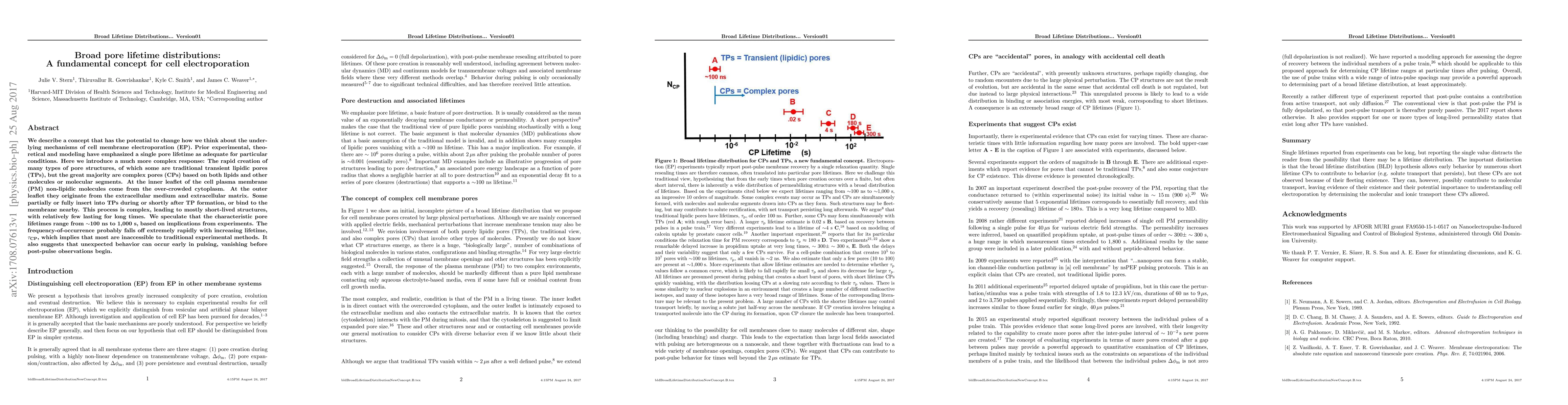 Researchers propose a new concept for cell electroporation involving multiple types of pores with lifetimes ranging from 100 ns to 1,000 s, challenging traditional single pore lifetime assumptions.