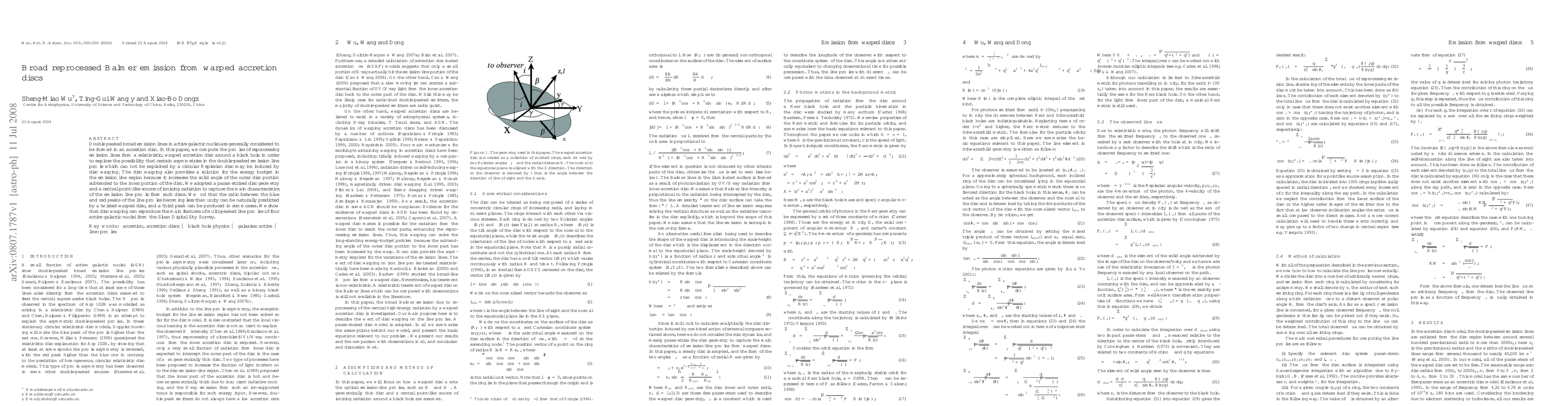 This paper investigates the formation of double-peaked broad emission lines in active galactic nuclei, proposing that warping in the accretion disc around a black hole can explain certain asymmetries not accounted for by a circular disc. The study finds that warped discs can reproduce the observed multi-peaked line profiles and resolve the energy budget issue in the emission line region.