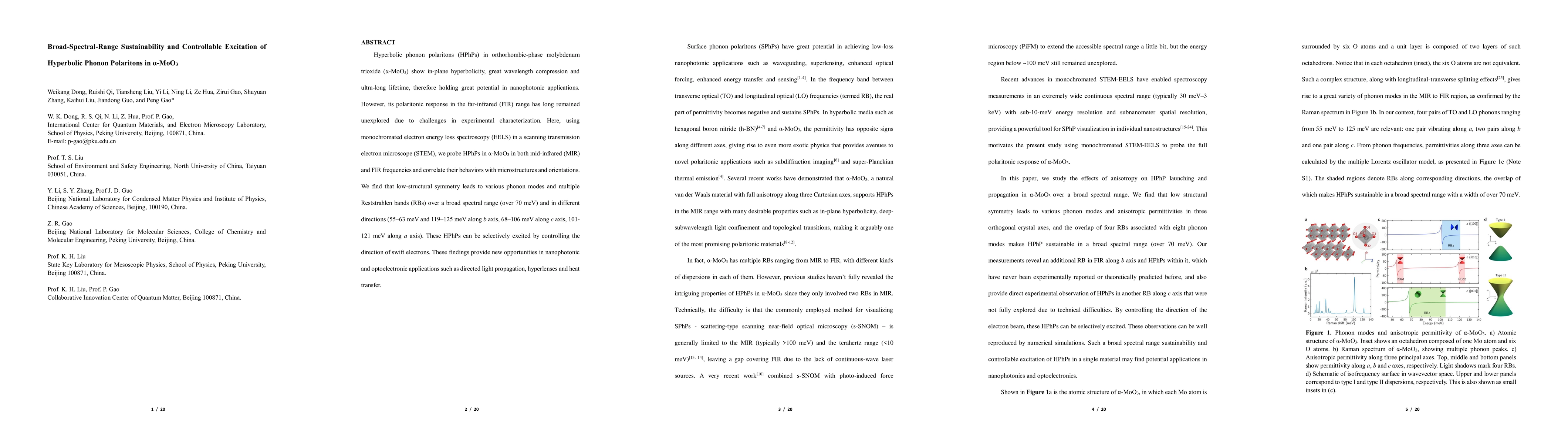 This paper investigates hyperbolic phonon polaritons (HPhPs) in $\alpha$-MoO3 using electron energy loss spectroscopy, revealing broad-spectral-range polaritonic responses in both mid-infrared and far-infrared frequencies. The study demonstrates controllable excitation of HPhPs by adjusting electron beam direction, opening new avenues for nanophotonic applications.