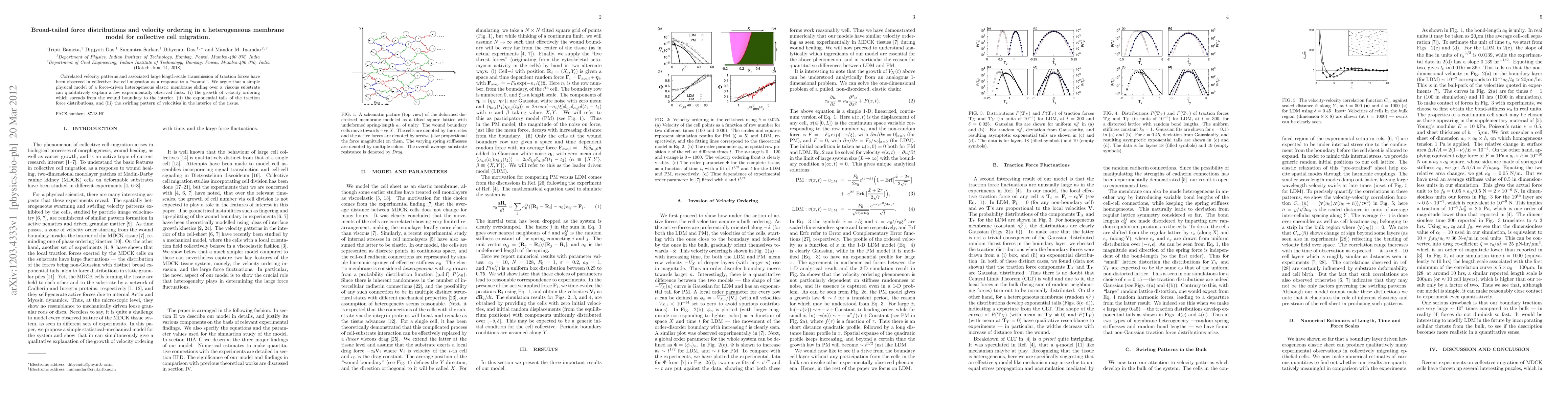 Correlated velocity patterns and associated large length-scale transmission of traction forces have been observed in collective live cell migration as a response to a "wound". We argue that a simple physical model of a force-driven heterogeneous elastic membrane sliding over a viscous substrate can qualitatively explain a few experimentally observed facts: (i) the growth of velocity ordering which spreads from the wound boundary to the interior, (ii) the exponential tails of the traction force distributions, and (iii) the swirling pattern of velocities in the interior of the tissue.