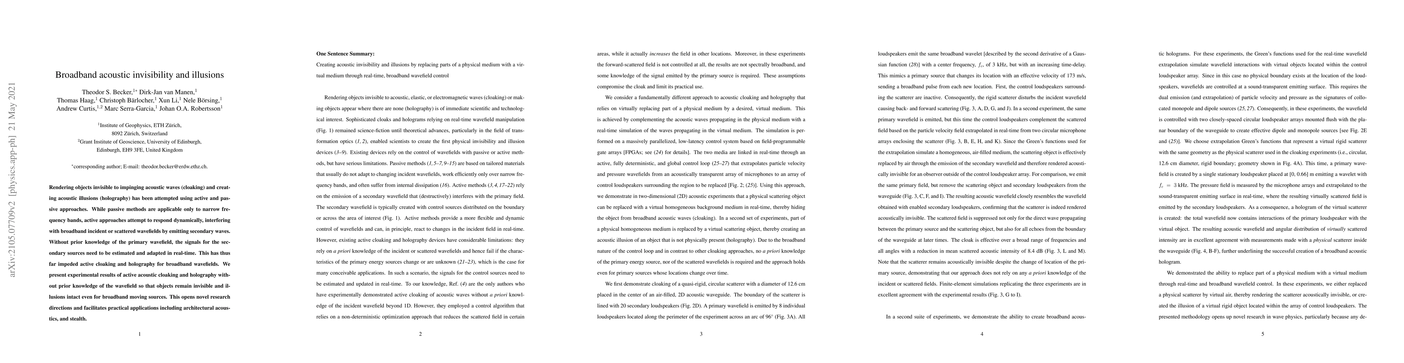 Researchers developed a method for active acoustic cloaking and holography that can handle broadband wavefields without prior knowledge of the primary wavefield. This breakthrough enables new applications in architectural acoustics and stealth technologies.