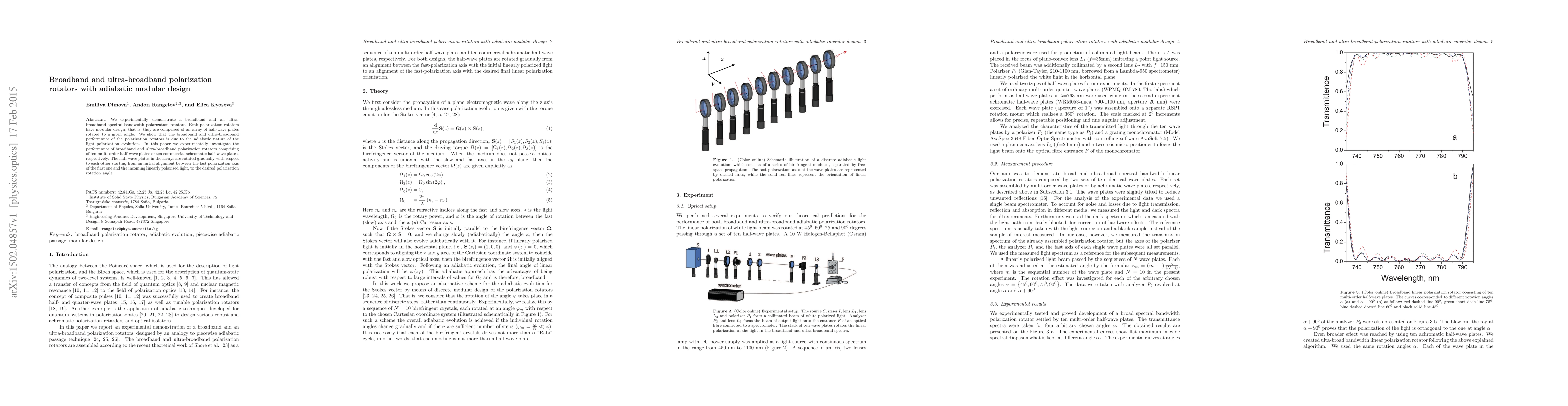 The paper presents an adiabatic modular design for polarization rotators, utilizing gradual rotation of half-wave plates to achieve broadband and ultra-broadband performance.