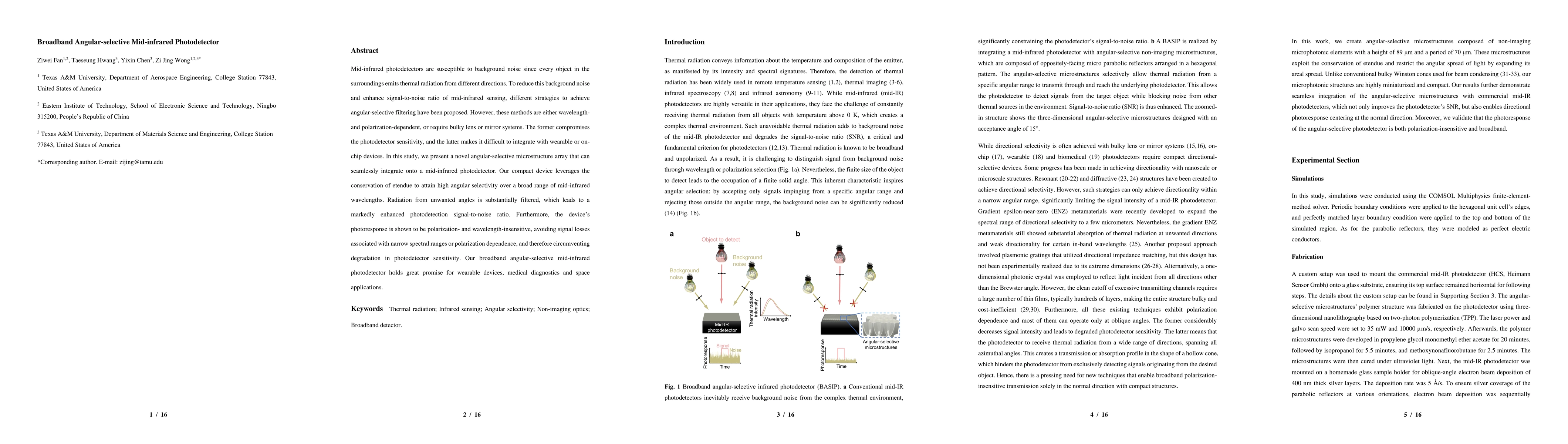 This compact, directional, and noise-suppressed photodetector is highly suitable for applications in wearable devices, medical diagnostics, robotics, and space-based sensing, offering enhanced sensitivity and selectivity over a broad range of mid-infrared wavelengths.