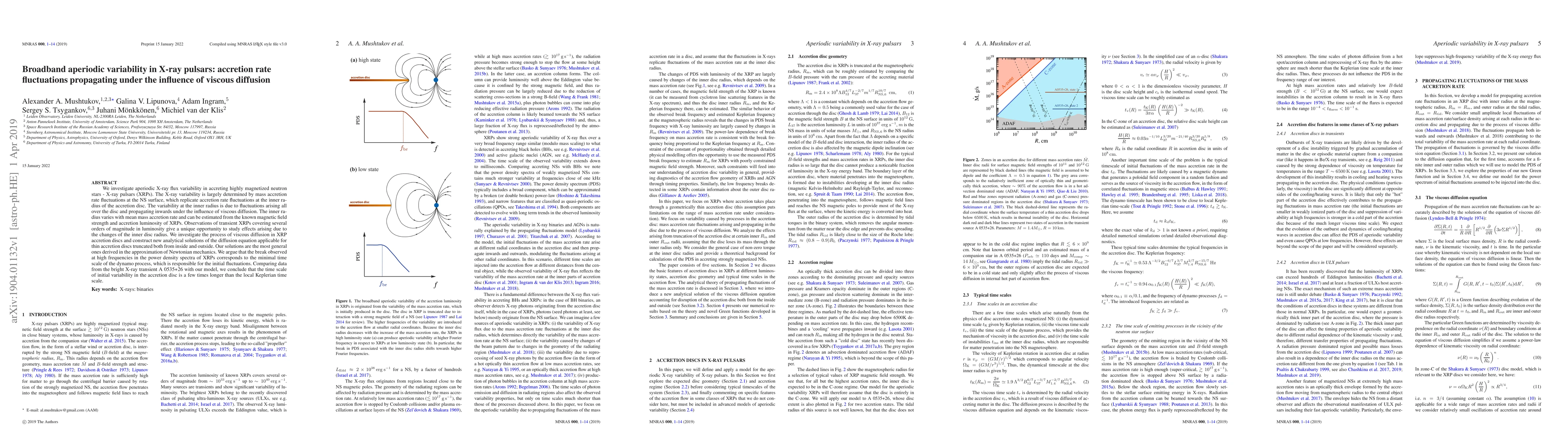 This paper investigates aperiodic X-ray variability in X-ray pulsars, attributing it to accretion rate fluctuations propagated inward by viscous diffusion. The study develops new analytical solutions for viscous diffusion in truncated accretion discs, concluding that high-frequency variability break scales with the dynamo process time scale, longer than the local Keplerian time scale.
