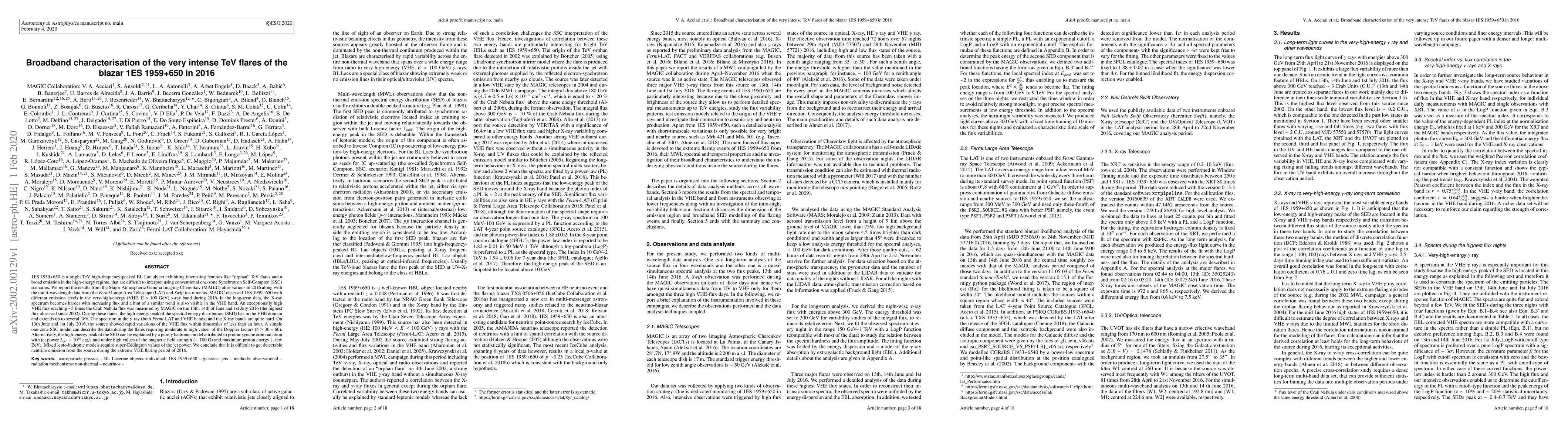1ES 1959+650 is a bright TeV high-frequency-peaked BL Lac object exhibiting interesting features like "orphan" TeV flares and a broad emission in the high-energy regime, that are difficult to interpret using conventional one-zone Synchrotron Self-Compton (SSC) scenarios. We report the results from the Major Atmospheric Gamma Imaging Cherenkov (MAGIC) observations in 2016 along with the multi-wavelength data from the Fermi Large Area Telescope (LAT) and Swift instruments. MAGIC observed 1ES 1959+650 with different emission levels in the very-high-energy (VHE, E >100 GeV) gamma-ray band during 2016. In the long-term data, the X-ray spectrum becomes harder with increasing flux and a hint of a similar trend is also visible in the VHE band. An exceptionally high VHE flux reaching ~ 3 times the Crab Nebula flux was measured by MAGIC on the 13th, 14th of June and 1st July 2016 (the highest flux observed since 2002). During these flares, the high-energy peak of the spectral energy distribution (SED) lies in the VHE domain and extends up to several TeV. The spectrum in the gamma-ray (both Fermi-LAT and VHE bands) and the X-ray bands are quite hard. On 13th June and 1st July 2016, the source showed rapid variations of the VHE flux within timescales of less than an hour. A simple one-zone SSC model can describe the data during the flares requiring moderate to high values of the Doppler factors (>=30-60). Alternatively, the high-energy peak of the SED can be explained by a purely hadronic model attributed to proton-synchrotron radiation with jet power L_{jet}~10^{46} erg/s and under high values of the magnetic field strength (~100 G) and maximum proton energy (~few EeV). Mixed lepto-hadronic models require super-Eddington values of the jet power. We conclude that it is difficult to get detectable neutrino emission from the source during the extreme VHE flaring period of 2016.