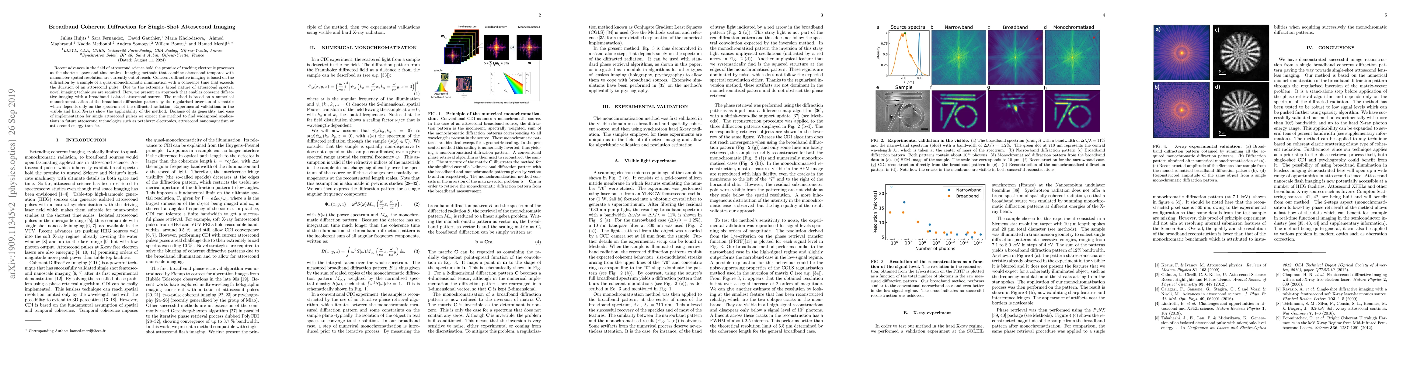 This paper introduces a novel technique for broadband coherent diffractive imaging using a single-shot attosecond pulse, enabling high temporal and spatial resolution imaging. The method employs numerical monochromatisation and matrix inversion to process diffraction patterns, validated experimentally across visible and hard X-ray spectra.