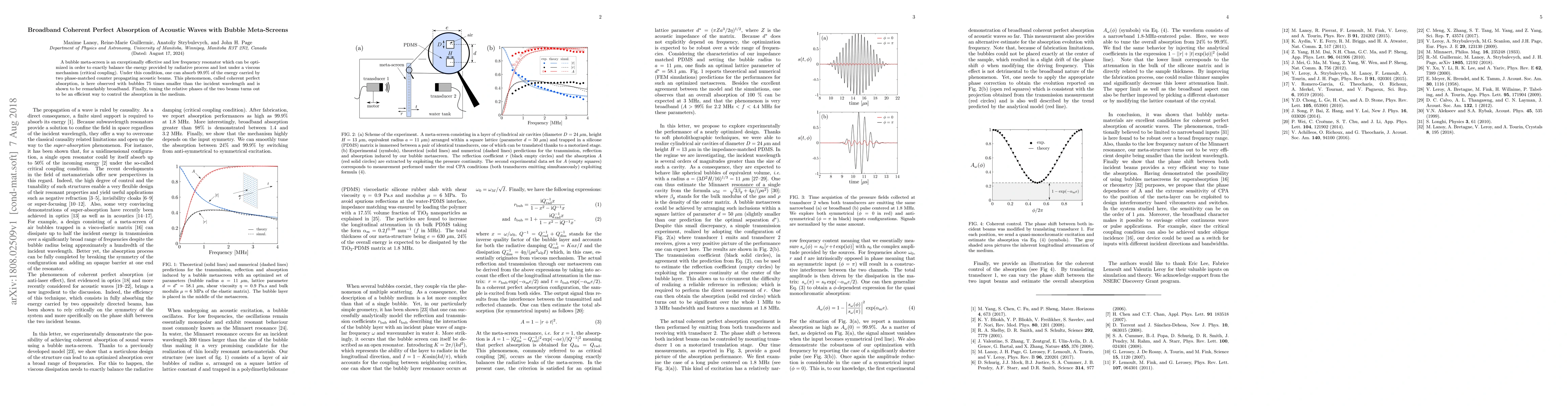The design and fabrication of a bubble metascreen for coherent perfect absorption of acoustic waves.