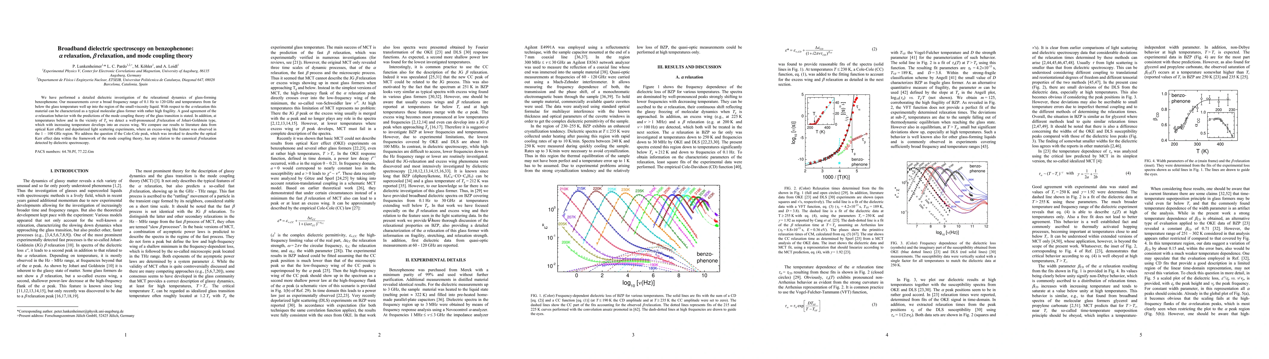 This paper investigates the relaxation dynamics of benzophenone using broadband dielectric spectroscopy, identifying both alpha and beta relaxation processes. The alpha relaxation aligns well with mode coupling theory predictions, while the beta relaxation transforms into an excess wing with temperature, prompting a discussion on its relation to the Cole-Cole peak observed in optical Kerr effect data.