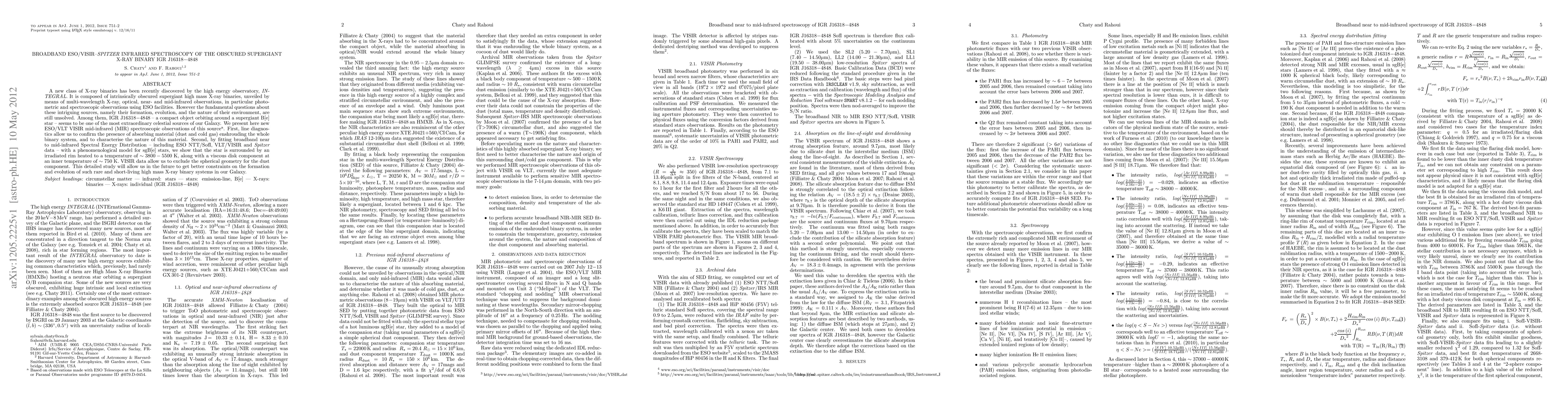 A new class of X-ray binaries has been recently discovered by the high energy observatory, INTEGRAL. It is composed of intrinsically obscured supergiant high mass X-ray binaries, unveiled by means of multi-wavelength X-ray, optical, near- and mid-infrared observations, in particular photometric and spectroscopic observations using ESO facilities. However the fundamental questions about these intriguing sources, namely their formation, evolution, and the nature of their environment, are still unsolved. Among them, IGR J16318-4848 - a compact object orbiting around a supergiant B[e] star - seems to be one of the most extraordinary celestial sources of our Galaxy. We present here new ESO/VLT VISIR mid-infrared (MIR) spectroscopic observations of this source. First, line diagnostics allow us to confirm the presence of absorbing material (dust and cold gas) enshrouding the whole binary system, and to characterise the nature of this material. Second, by fitting broadband near to mid-infrared Spectral Energy Distribution - including ESO NTT/SofI, VLT/VISIR and Spitzer data - with a phenomenological model for sgB[e] stars, we show that the star is surrounded by an irradiated rim heated to a temperature of 3800-5500 K, along with a viscous disk component at an inner temperature of 750 K. VISIR data allow us to exclude the spherical geometry for the dust component. This detailed study will allow us in the future to get better constraints on the formation and evolution of such rare and short-living high mass X-ray binary systems in our Galaxy.
