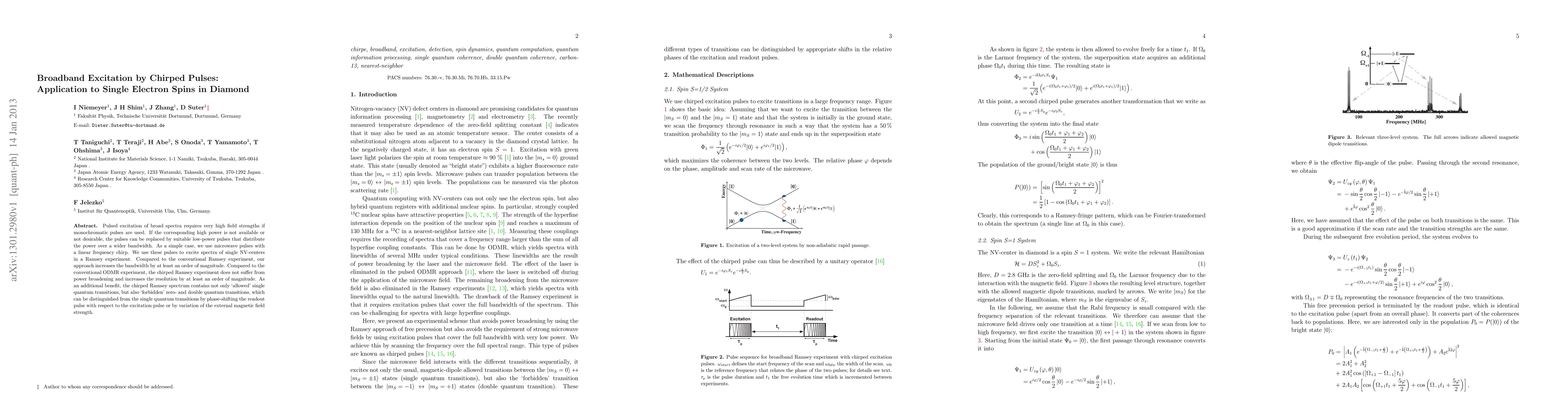 This paper proposes using chirped microwave pulses to broaden the excitation spectrum of single electron spins in diamond NV-centers, significantly enhancing the resolution and bandwidth compared to conventional methods, while also revealing additional forbidden transitions.