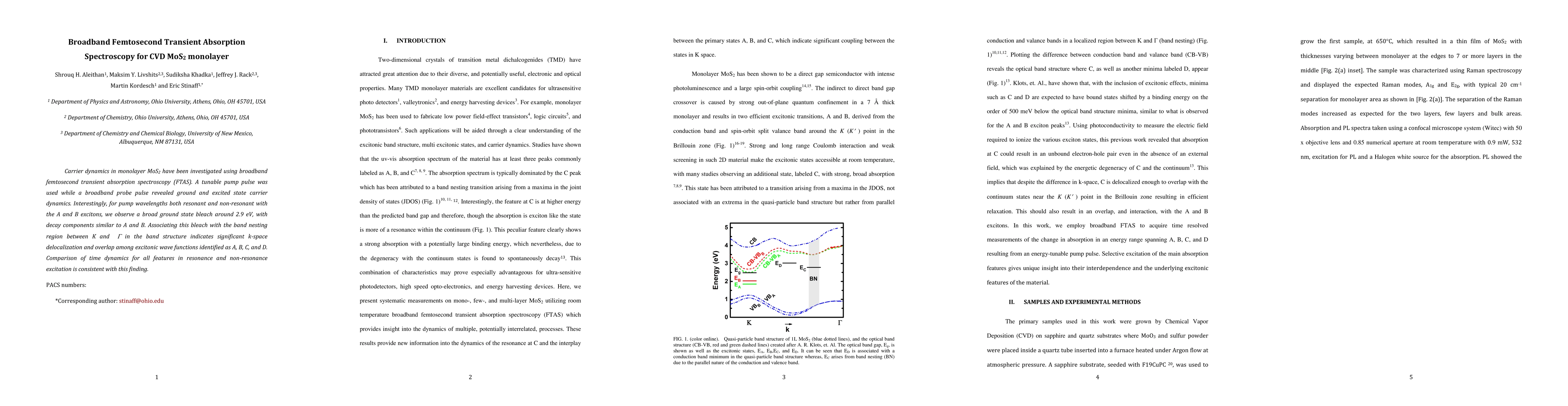 Carrier dynamics in monolayer MoS2 have been investigated using broadband femtosecond transient absorption spectroscopy (FTAS). A tunable pump pulse was used while a broadband probe pulse revealed ground and excited state carrier dynamics. Interestingly, for pump wavelengths both resonant and non-resonant with the A and B excitons, we observe a broad ground state bleach around 2.9 eV, with decay components similar to A and B. Associating this bleach with the band nesting region between K and Gamma in the band structure indicates significant k-space delocalization and overlap among excitonic wave functions identified as A, B, C, and D. Comparison of time dynamics for all features in resonance and non-resonance excitation is consistent with this finding.