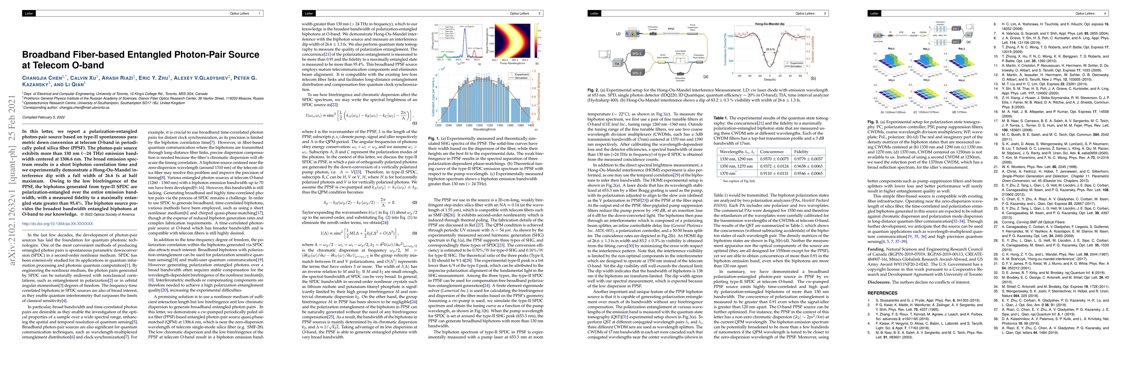The paper demonstrates a novel broadband polarization-entangled photon pair source based on type-II SPDC in a low-birefringence PPSF, which is compatible with existing telecom fiber links and facilitates long-distance entanglement distribution and compensation-free quantum clock synchronization.