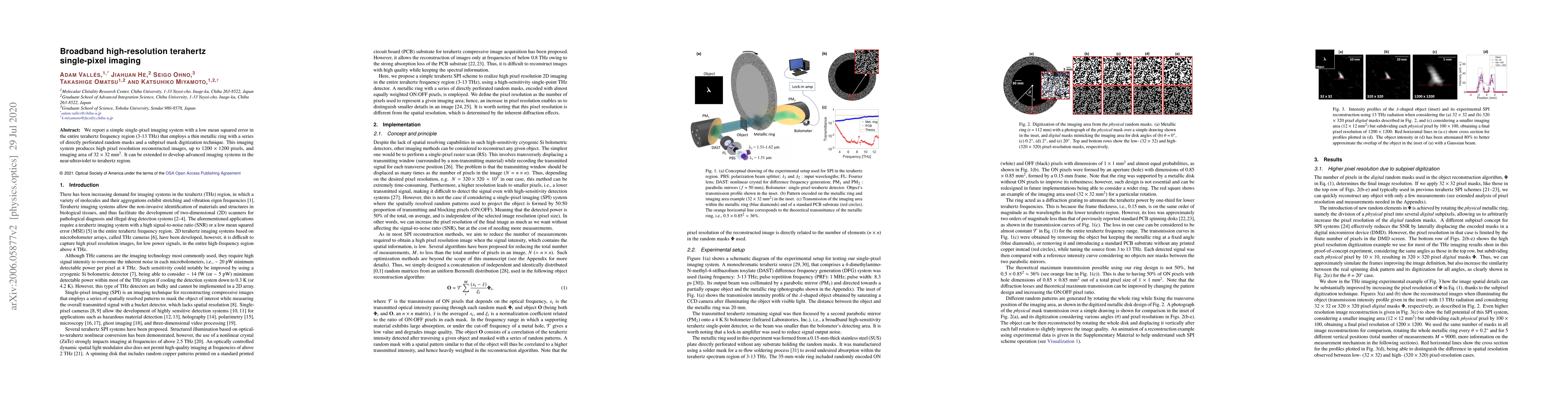 This study presents a broadband terahertz single-pixel imaging system using a metallic ring and random masks, achieving high resolution images up to 1200 x 1200 pixels over the 3-13 THz frequency range, with potential for expansion across the near-ultraviolet to terahertz spectrum.