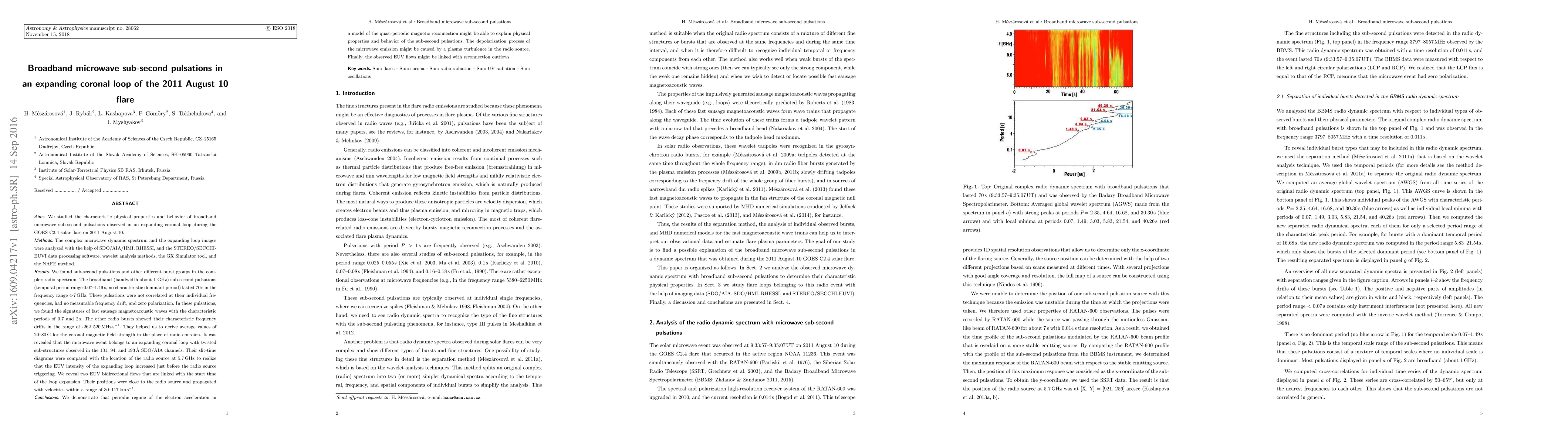 Researchers studied broadband microwave pulsations during a 2011 solar flare and found evidence of fast sausage magnetoacoustic waves, tied to an expanding coronal loop with twisted sub-structures.