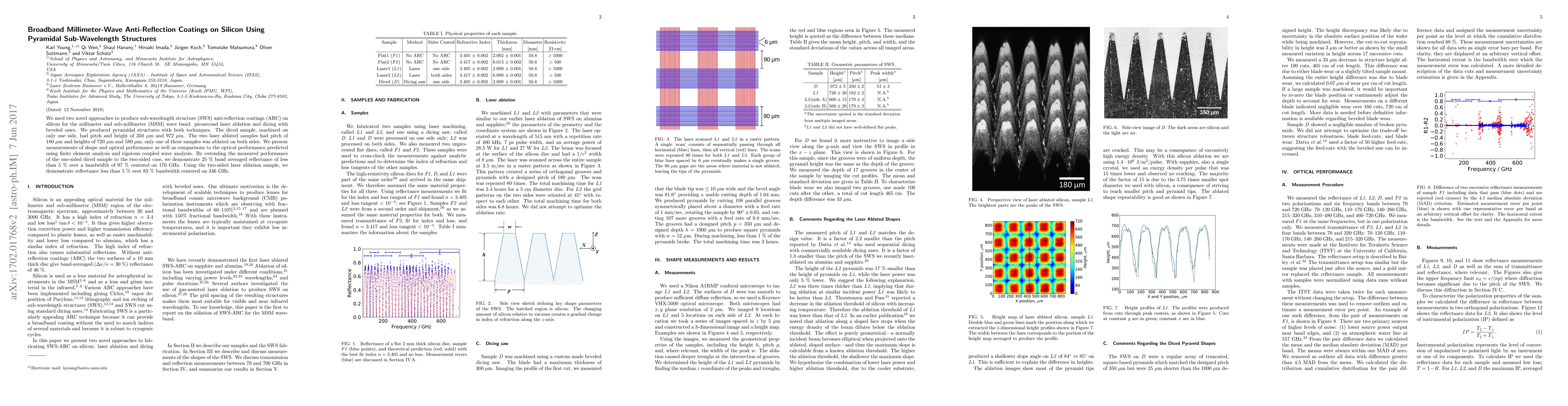 This paper presents two novel methods for creating sub-wavelength structure anti-reflection coatings on silicon for millimeter and sub-millimeter wave applications, achieving broadband low reflectance using pyramidal structures. The techniques show significant optical performance, with one-sided diced structures achieving less than 5% reflectance over a 97% bandwidth centered at 170 GHz.