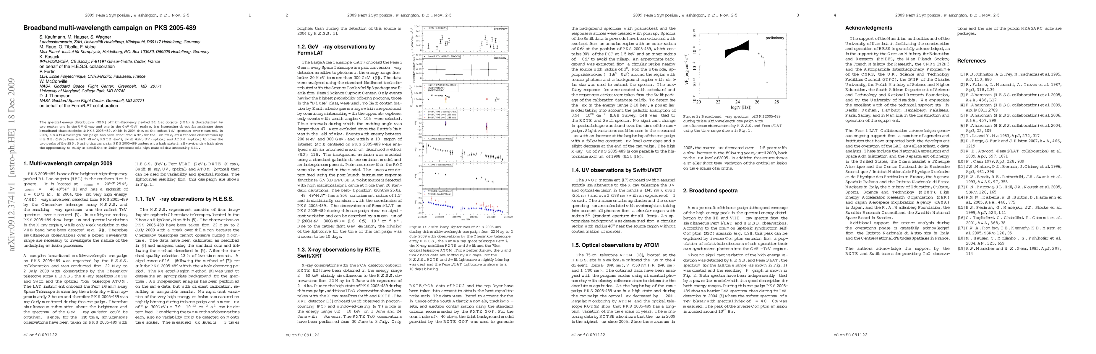 In 2009, a multi-wavelength campaign observed PKS 2005-489 simultaneously across various wavebands, revealing it in a high state. This allowed detailed study of emission processes in a high-state HBL, characterized by two SED peaks in UV-X-ray and GeV-TeV regimes.
