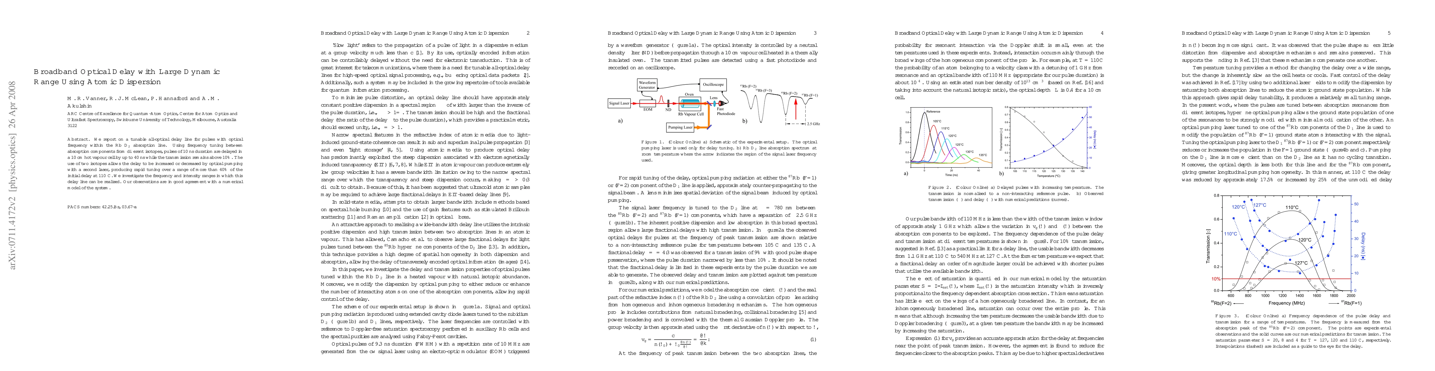 Researchers have developed a tunable optical delay line using atomic dispersion, allowing for pulse delays of up to 40 ns with transmission above 10%. The use of two isotopes enables rapid tuning over 40% of the initial delay.
