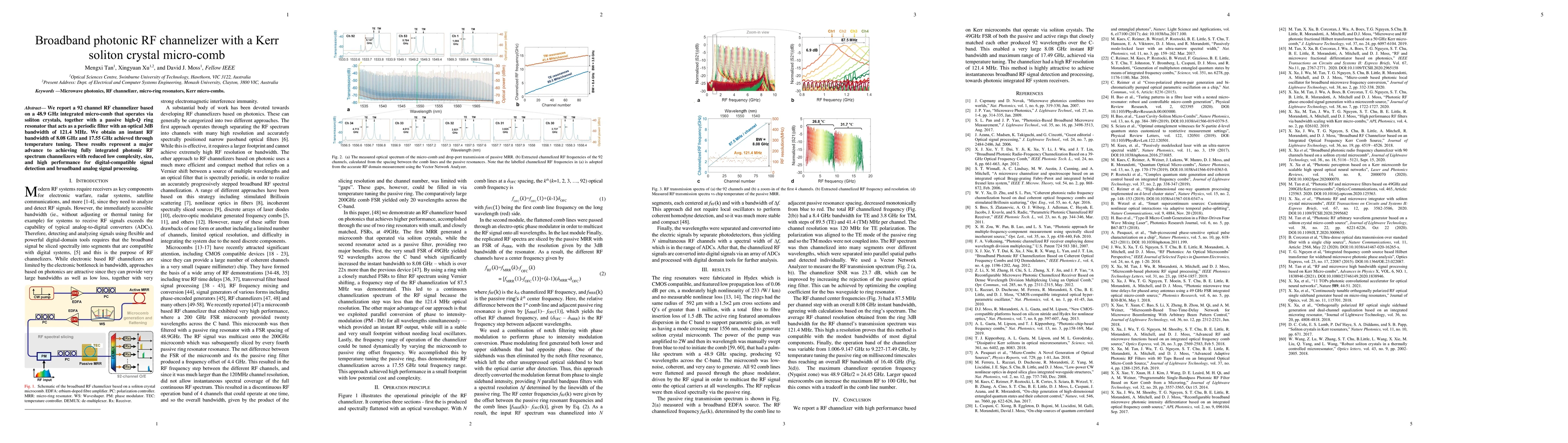 The paper presents an innovative approach using Kerr soliton crystals in micro-comb resonators for broadband RF channelization, combining it with passive high-Q ring resonators for filtering.