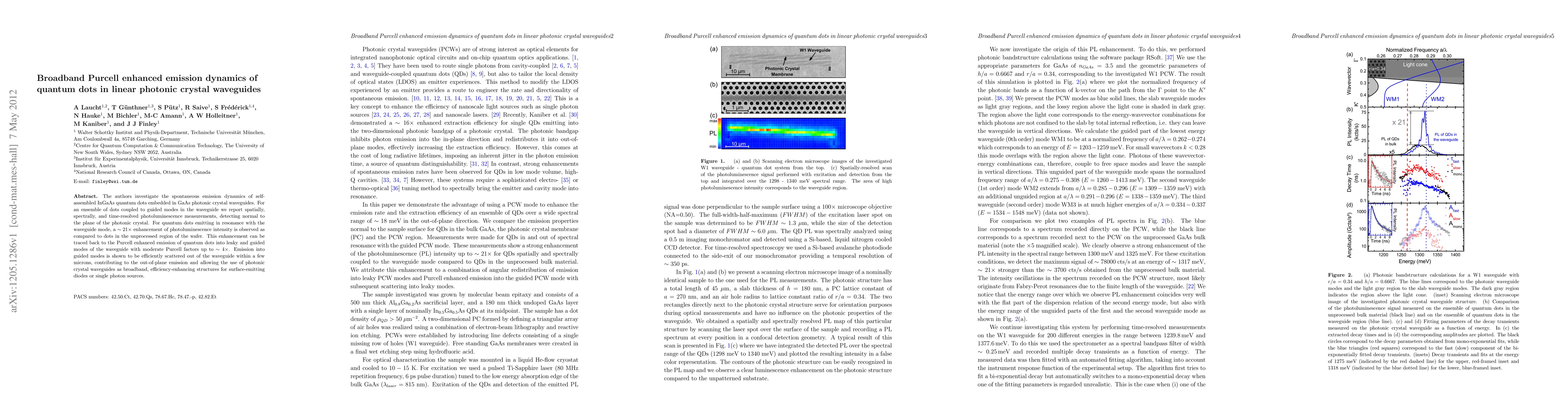 This study examines the enhanced spontaneous emission dynamics of InGaAs quantum dots in GaAs photonic crystal waveguides, observing a ~21x increase in photoluminescence intensity due to Purcell effect, and demonstrating waveguide-enhanced out-of-plane emission suitable for applications in surface-emitting devices and single photon sources.