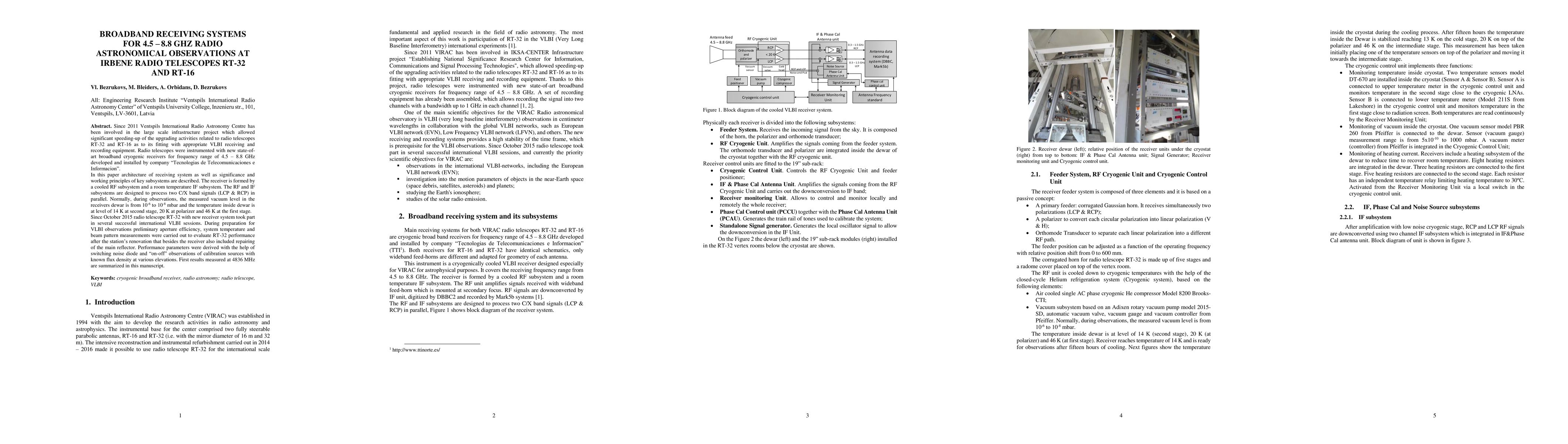 Researchers at Ventspils International Radio Astronomy Centre successfully installed a new broadband cryogenic receiver system on radio telescopes RT-32 and RT-16, enabling faster upgrades and improved performance for 4.58-8.8 GHz observations.