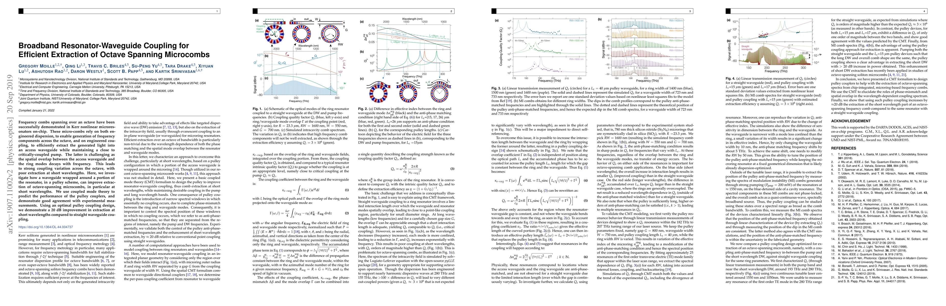 This paper investigates a broadband resonator-waveguide coupling scheme using a pulley design to efficiently extract octave-spanning microcombs, particularly improving extraction at short wavelengths. The study shows a 20 dB improvement over traditional coupling methods, validated through coupled mode theory and experimental results.