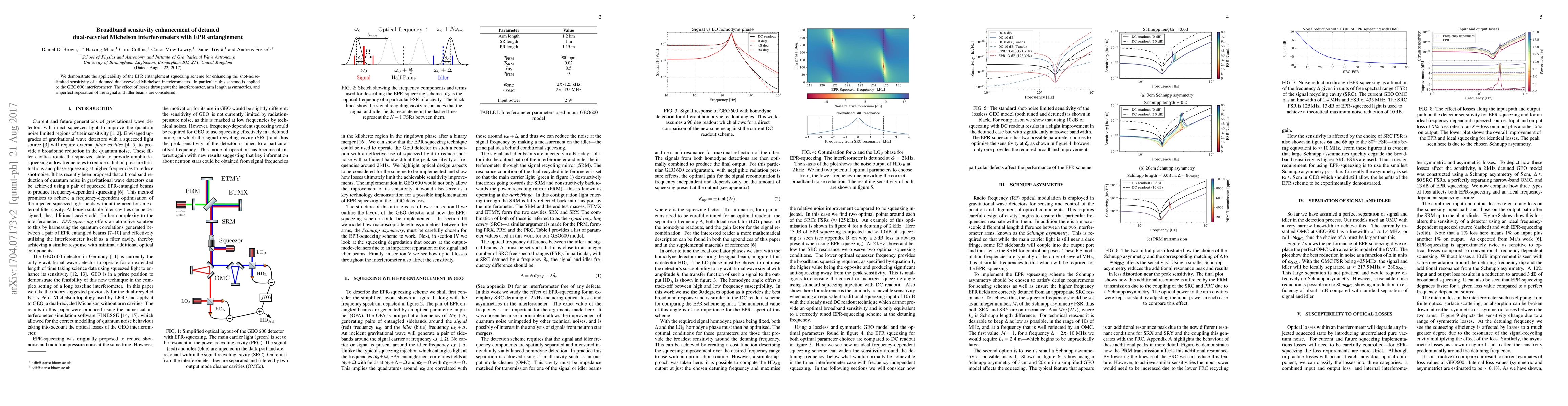 This paper demonstrates the use of EPR entanglement squeezing to enhance the sensitivity of detuned dual-recycled Michelson interferometers, specifically applied to the GEO\,600 interferometer, while considering losses, arm length asymmetries, and beam separation imperfections.