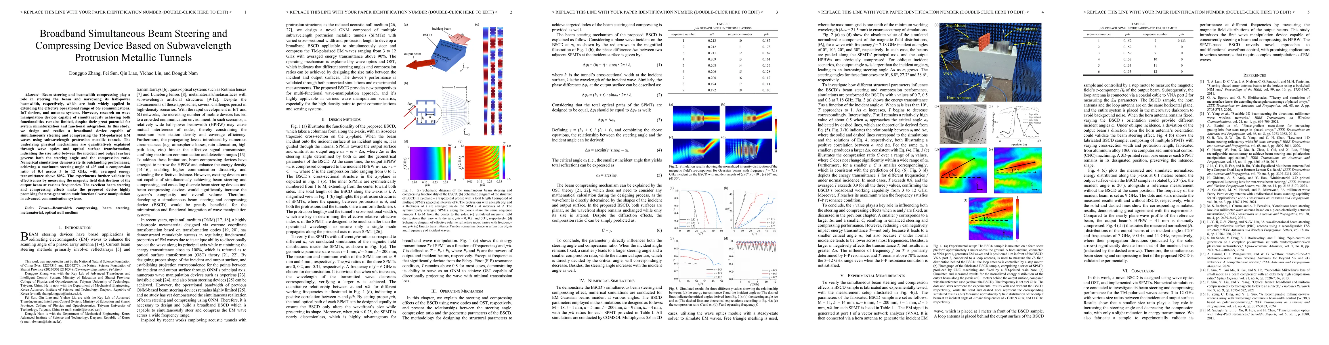 Beam steering and beamwidth compressing play a role in steering the beam and narrowing its half-power beamwidth, respectively, which are both widely applied in extending the effective operational range of 6G communications, IoT devices, and antenna systems. However, research on wave manipulation devices capable of simultaneously achieving both functionalities remains limited, despite their great potential for system miniaturization and functional integration. In this study, we design and realize a broadband device capable of simultaneously steering and compressing the TM-polarized EM waves using subwavelength protrusion metallic tunnels. The underlying physical mechanisms are quantitatively explained through wave optics and optical surface transformation, indicating the size ratio between the incident and output surface governs both the steering angle and the compression ratio. Numerical simulations demonstrate its outstanding performance, achieving a maximum steering angle of 40{\deg} and a compression ratio of 0.4 across 3 to 12 GHz, with averaged energy transmittance above 80%. The experiments further validate its effectiveness by measuring the magnetic field distributions of the output beam at various frequencies. The excellent beam steering and compressing effects make the proposed device highly promising for next-generation multifunctional wave manipulation in advanced communication systems.
