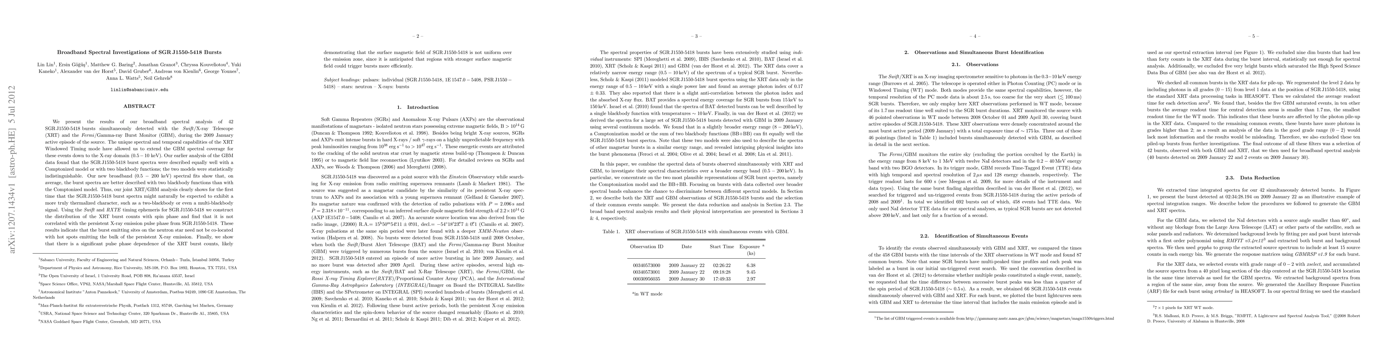 This study analyzes 42 bursts from SGR J1550-5418 using Swift/XRT and Fermi/GBM data, finding that the burst spectra are better described by two blackbody functions rather than a Comptonized model, suggesting a thermalized nature. The burst emission sites are not correlated with the persistent X-ray emission, indicating non-uniform magnetic field distribution on the neutron star.