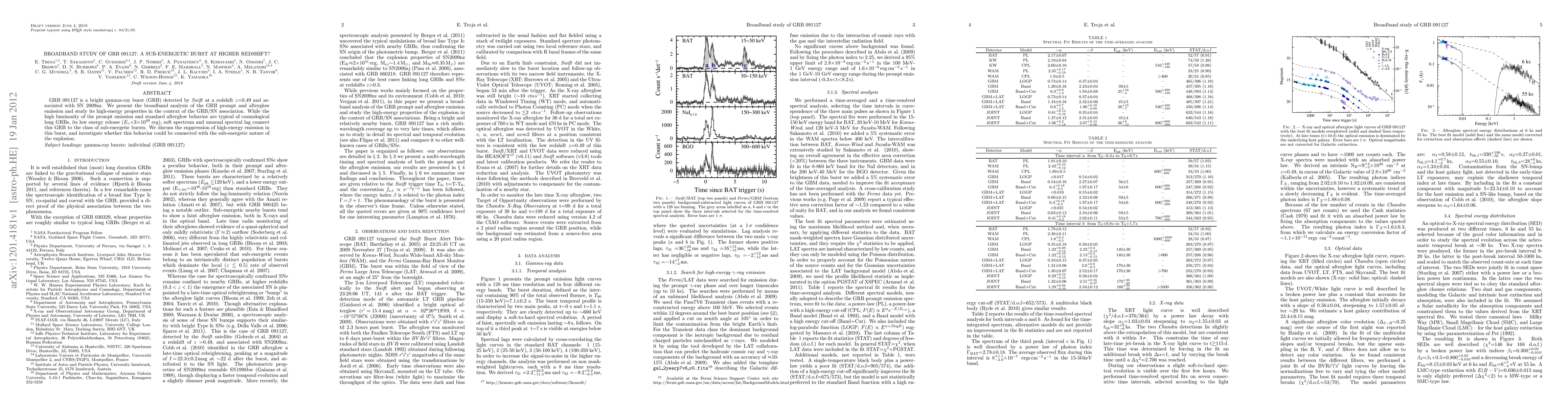 This paper analyzes the broadband emission of the gamma-ray burst (GRB) 091127, which exhibits low energy release and a soft spectrum, classifying it as a sub-energetic burst despite its high luminosity. The study explores whether the suppression of high-energy emission is linked to its sub-energetic nature.