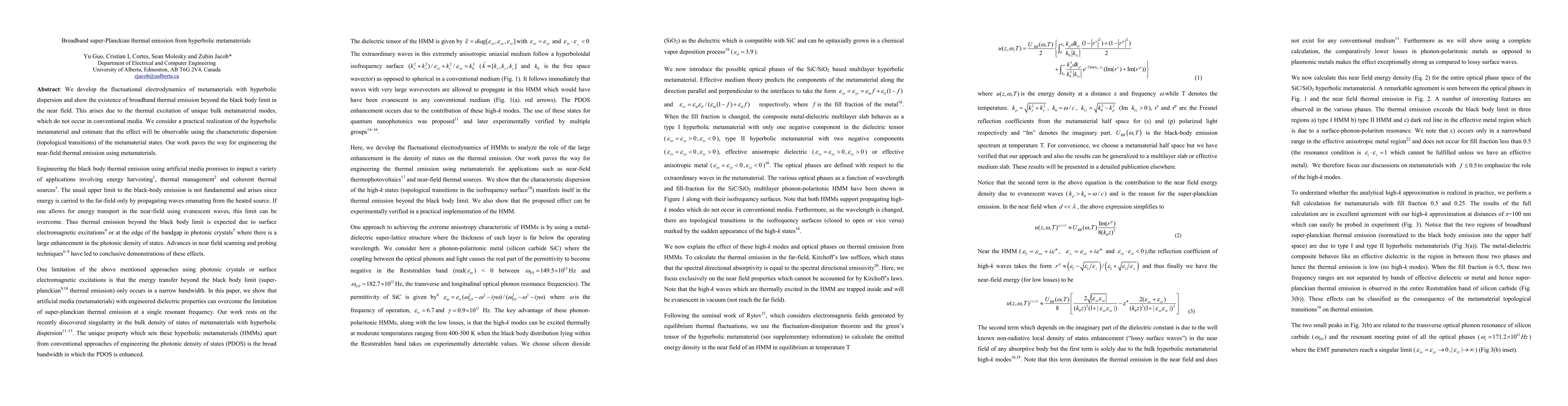 This research demonstrates the capability of hyperbolic metamaterials to enable broadband super-Planckian thermal emission exceeding the black body limit through unique bulk metamaterial modes, offering potential for advanced near-field thermal emission engineering. Practical realization and observability of this effect are discussed, highlighting the significance of metamaterial states' dispersion.