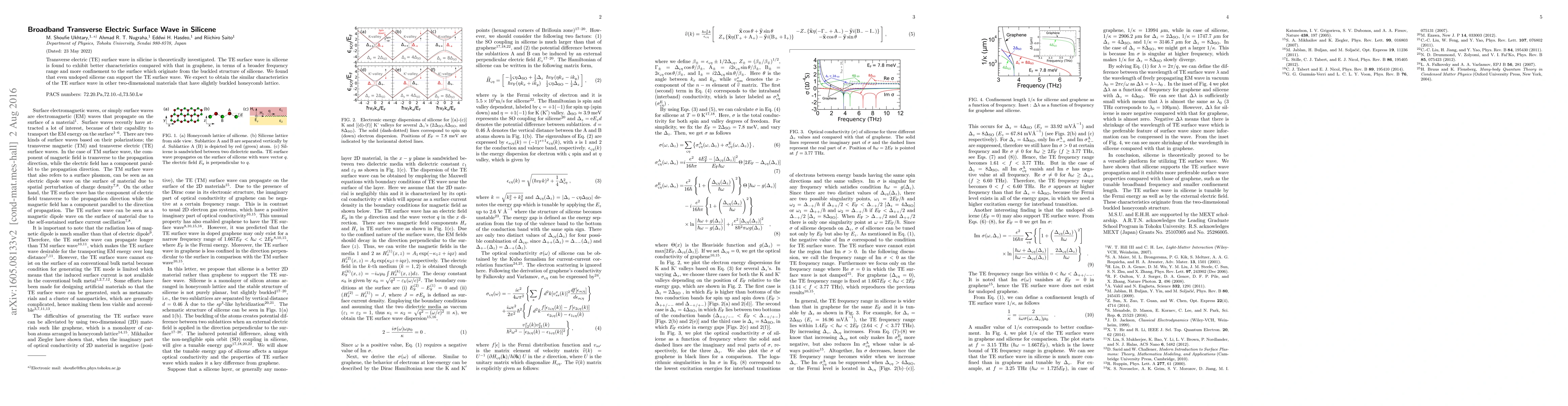This paper investigates the transverse electric (TE) surface wave in silicene, finding it exhibits better characteristics than in graphene due to silicene's buckled structure, including a broader frequency range and greater surface confinement. Even undoped silicene supports these waves, suggesting similar properties in other buckled honeycomb lattice materials.