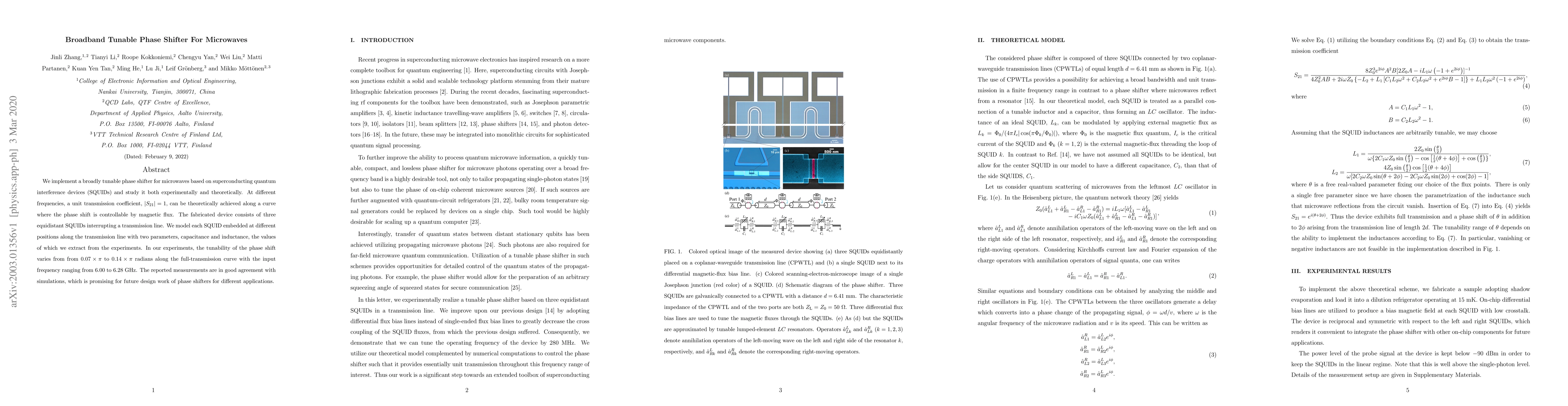 This paper presents a broadly tunable microwave phase shifter utilizing superconducting quantum interference devices (SQUIDs) and demonstrates its functionality experimentally and theoretically. The device achieves a unit transmission coefficient and tunable phase shift controlled by magnetic flux, showing promising results for future phase shifter designs.