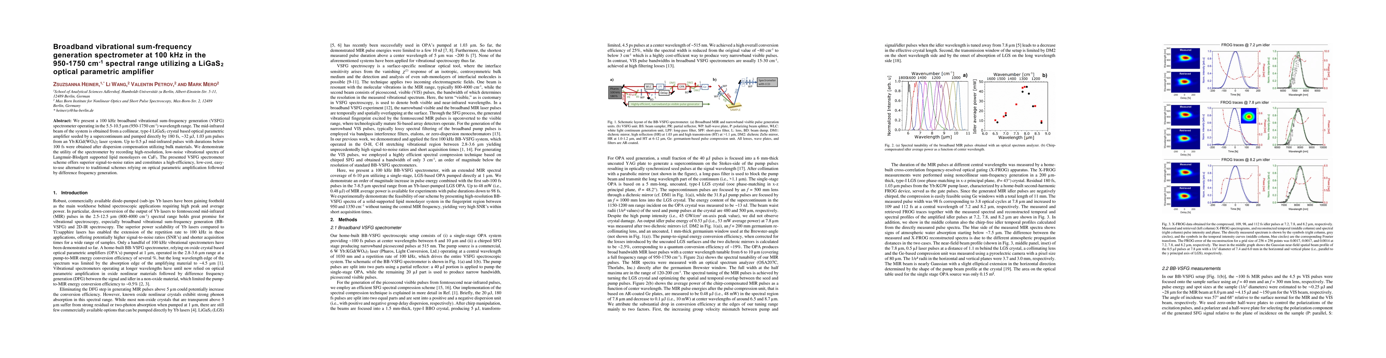 This paper introduces a 100 kHz broadband vibrational sum-frequency generation (VSFG) spectrometer functioning in the 950-1750 cm$^{-1}$ range, using a LiGaS$_{2}$ optical parametric amplifier. The system, driven by a Yb:KGd(WO$_{4}$)$_2$ laser, delivers high-resolution, low-noise spectra, as demonstrated by successful recording of lipid monolayer vibrational spectra. This spectrometer offers superior signal-to-noise ratios and is a cost-effective alternative to conventional VSFG schemes.