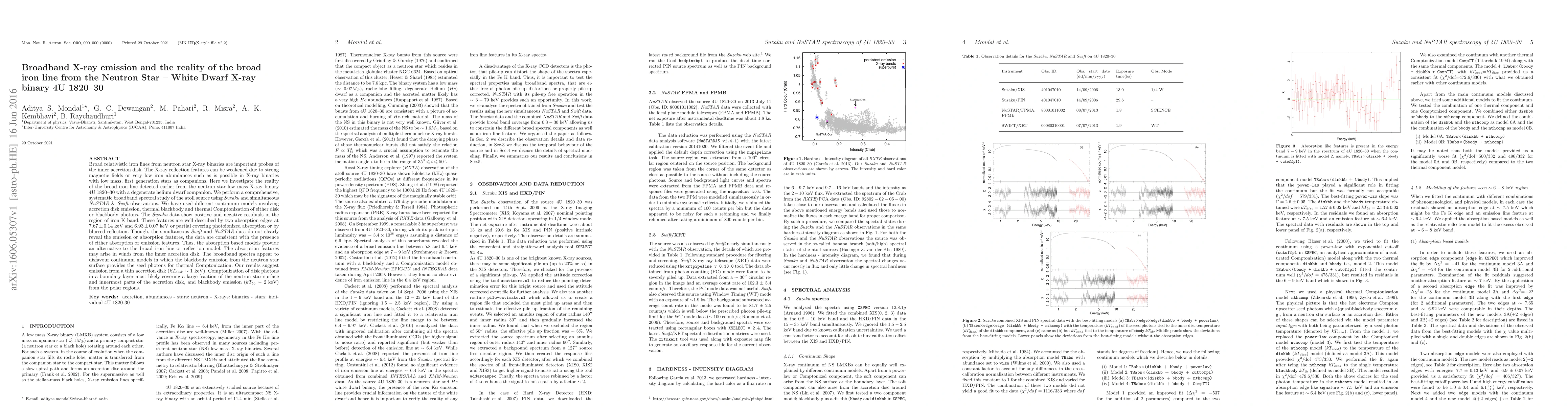 This study investigates the broadband X-ray emission and the broad iron line in the neutron star X-ray binary 4U 1820-30, finding evidence for absorption features instead of the expected broad iron line. The results suggest that the X-ray spectrum is better explained by Comptonization of disk photons in a boundary layer and blackbody emission from polar regions rather than a broad iron line.