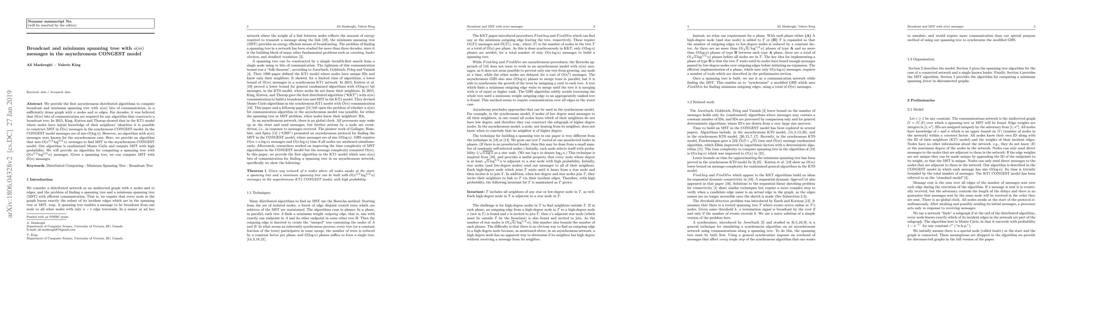 This paper presents the first asynchronous distributed algorithms to compute broadcast and minimum spanning tree (MST) with $o(m)$ communication messages in the CONGEST model. The authors achieve an MST construction using $O(n^{3/2} \log^{3/2} n)$ messages, breaking the long-held belief that $\Omega(m)$ bits are necessary for such tasks.