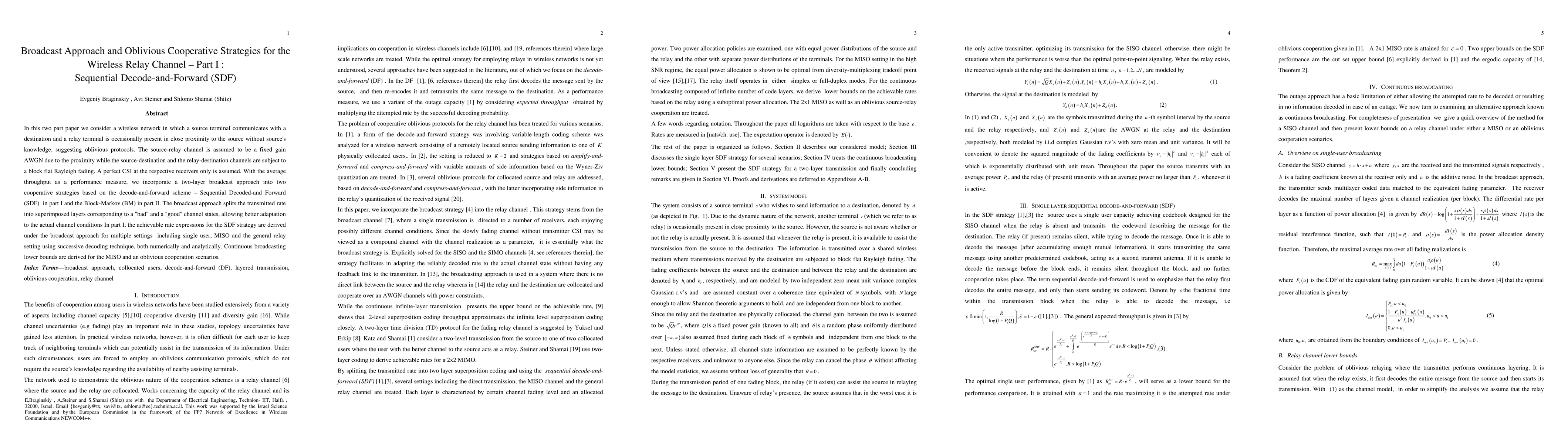 This paper explores wireless relay networks where a source communicates with a destination, with an optional relay that the source is unaware of. It introduces a broadcast approach for a Sequential Decode-and-Forward (SDF) strategy, deriving achievable rate expressions and lower bounds under various settings, focusing on adapting to channel conditions through layered transmission.