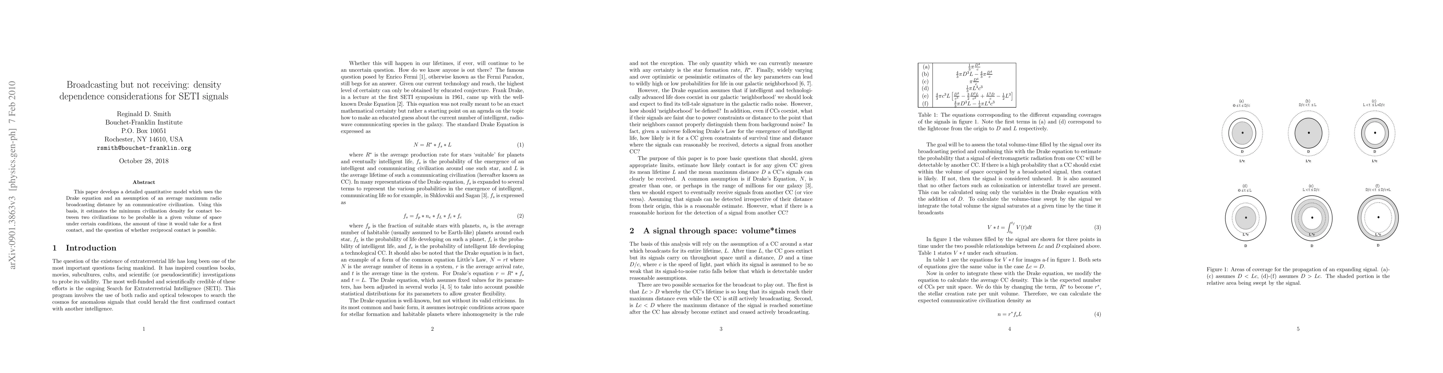 This paper develops a detailed quantitative model which uses the Drake equation and an assumption of an average maximum radio broadcasting distance by an communicative civilization to derive a minimum civilization density for contact between two civilizations to be probable in a given volume of space under certain conditions, the amount of time it would take for a first contact, and whether reciprocal contact is possible. Results show that under certain assumptions, a galaxy can be teeming with civilizations yet not have a guarantee of communication between any of them given either short lifetimes or small maximum distances for communication.