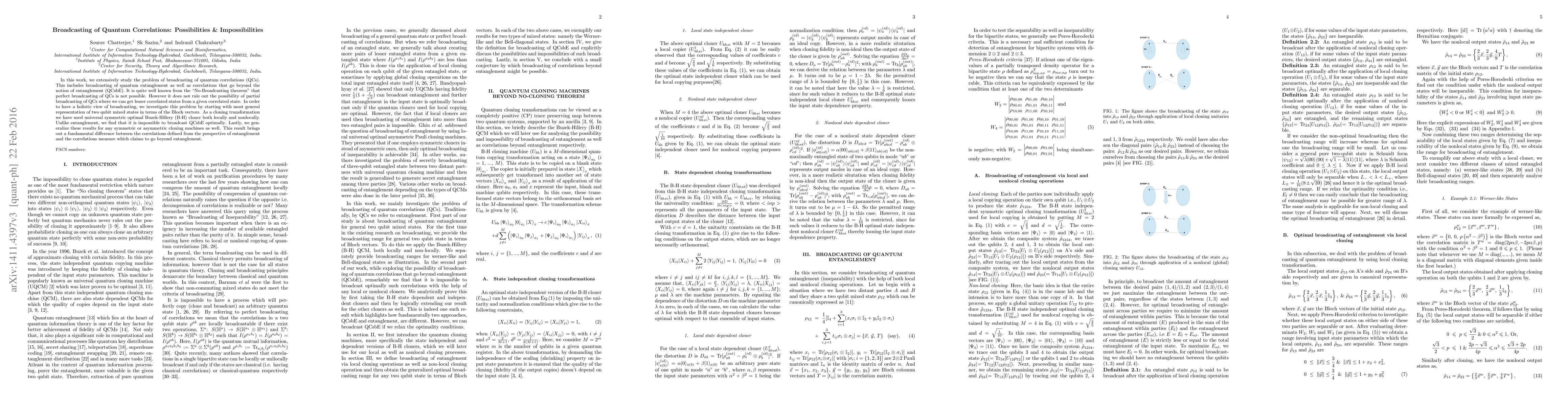 This research investigates the possibility and limitations of broadcasting quantum correlations, including entanglement and broader correlations. While perfect broadcasting is impossible, partial broadcasting is feasible for entanglement. However, even partial broadcasting of correlations beyond entanglement is shown to be impossible using both local and nonlocal quantum cloning methods, indicating a fundamental distinction between entanglement-based and broader correlation measures.