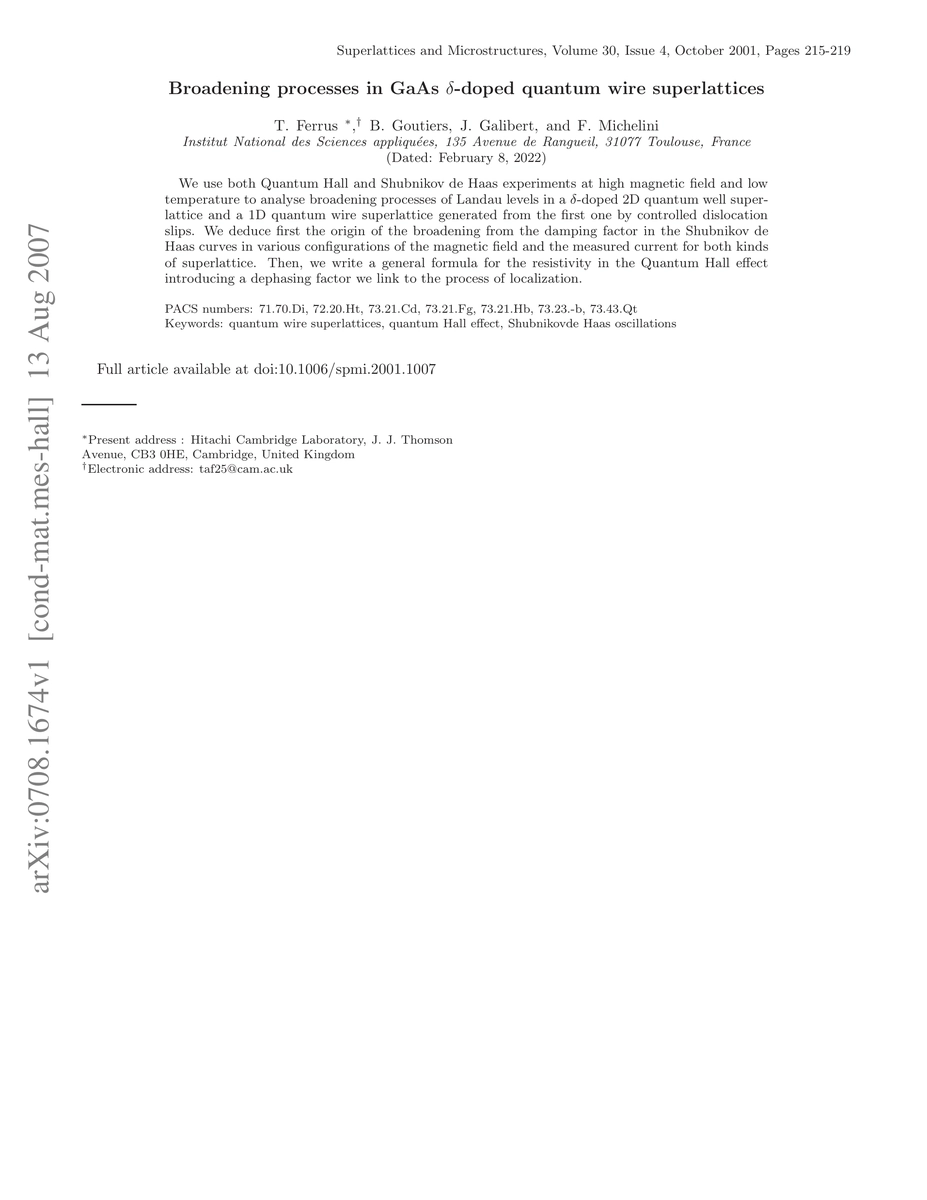 This paper investigates broadening processes in delta-doped GaAs quantum wire superlattices using Quantum Hall and Shubnikov de Haas experiments. The study identifies the origin of Landau level broadening through damping factors and proposes a general formula for resistivity in the Quantum Hall effect, linking a dephasing factor to localization processes.