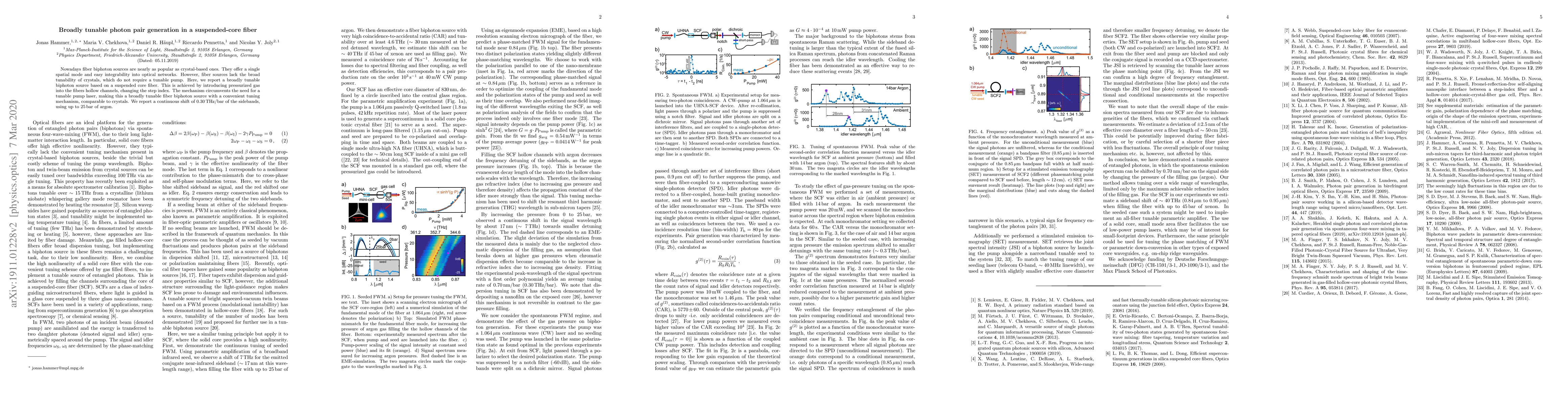 This paper presents a broadly tunable biphoton source in a suspended-core fiber, achieved by introducing pressurized gas to modify the fiber's step index, enabling a continuous shift of 0.30 THz per bar without requiring a tunable pump laser, comparable to crystal-based sources.