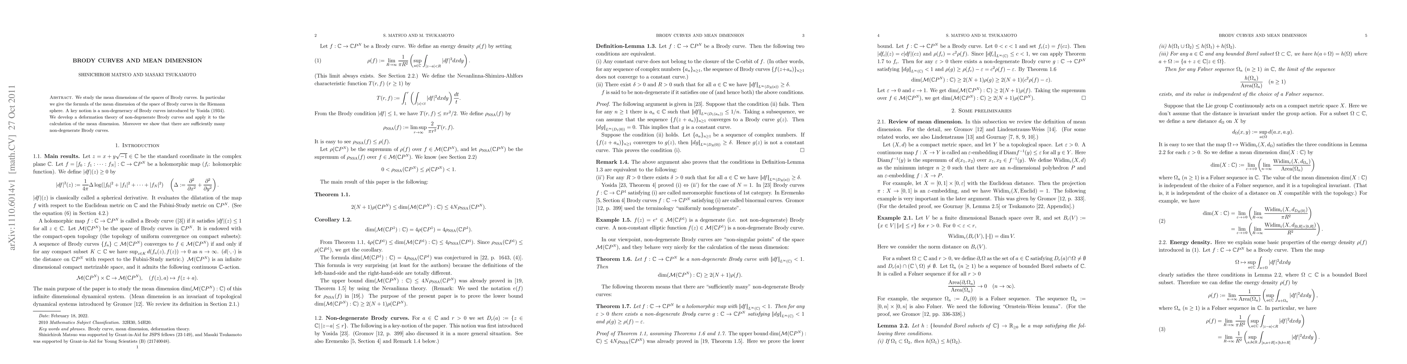 Summary: This paper investigates the mean dimensions of spaces of Brody curves, providing a specific formula for the mean dimension of the space of Brody curves on the Riemann sphere. The study contributes to understanding the geometric properties of these curves.