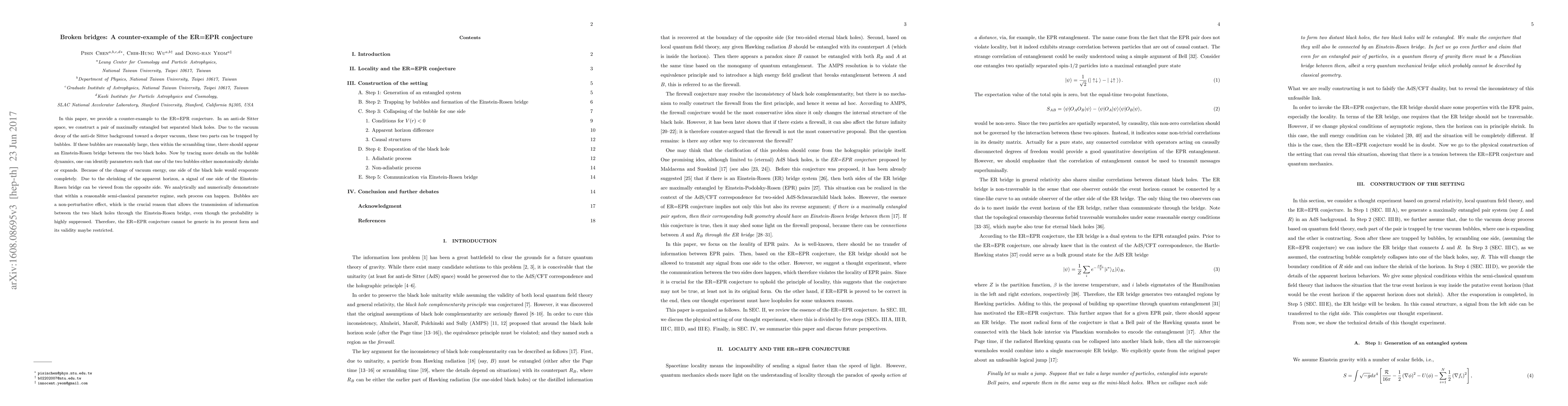 In this paper, we provide a counter-example to the ER=EPR conjecture. In an anti-de Sitter space, we construct a pair of maximally entangled but separated black holes. Due to the vacuum decay of the anti-de Sitter background toward a deeper vacuum, these two parts can be trapped by bubbles. If these bubbles are reasonably large, then within the scrambling time, there should appear an Einstein-Rosen bridge between the two black holes. Now by tracing more details on the bubble dynamics, one can identify parameters such that one of the two bubbles either monotonically shrinks or expands. Because of the change of vacuum energy, one side of the black hole would evaporate completely. Due to the shrinking of the apparent horizon, a signal of one side of the Einstein-Rosen bridge can be viewed from the opposite side. We analytically and numerically demonstrate that within a reasonable semi-classical parameter regime, such process can happen. Bubbles are a non-perturbative effect, which is the crucial reason that allows the transmission of information between the two black holes through the Einstein-Rosen bridge, even though the probability is highly suppressed. Therefore, the ER=EPR conjecture cannot be generic in its present form and its validity maybe restricted.